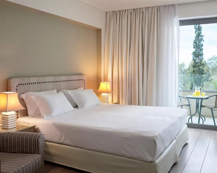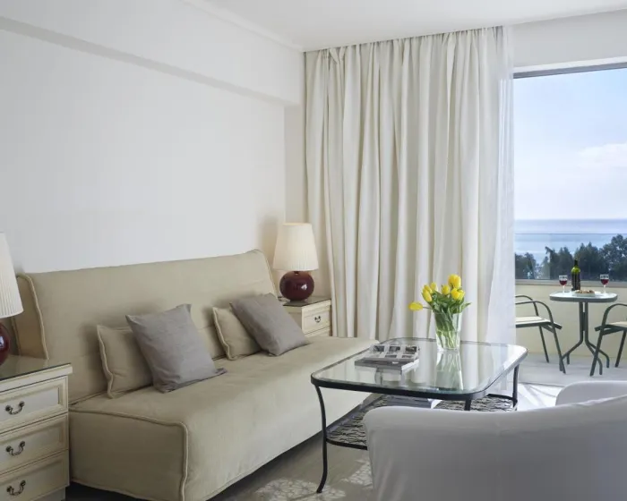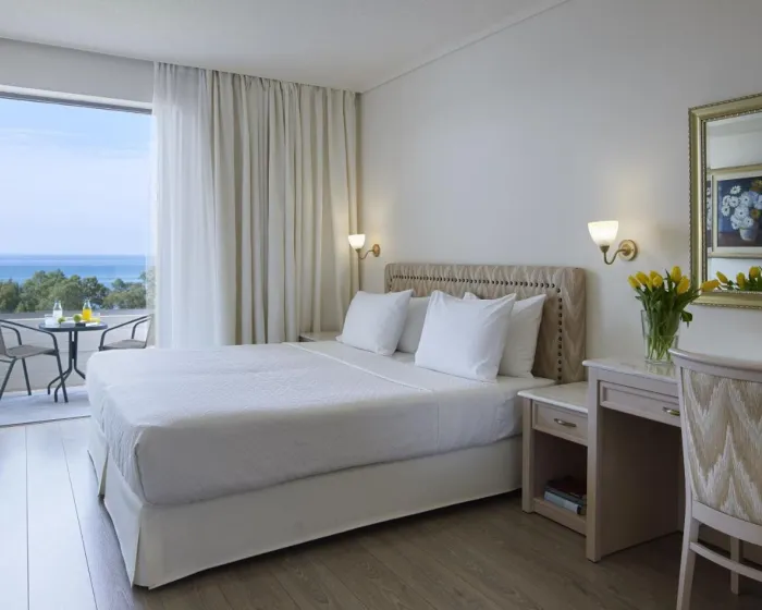 Sobe su opremljene klima uređajem i centralnim grejanjem. Gosti mogu opuštajući se uživati u pogledu na more sa balkona ili privatne terase nekih soba. Sobe imaju bračni krevet, krevet queen size ili krevet king size. Dostupne su odvojene spavaće sobe. Na raspolaganju su i sef, minibar i radni sto. Za dodatnu udobnost gostiju, jedinice sadrže frižider, mini frižider i aparat za kafu/čaj. Postavljen je i set za peglanje radi praktičnosti gostiju. Ostale karakteristike uključuju telefon, satelitsku televiziju, radio, CD plejer i WiFi (bez dodatne naplate). Papuče su uključene. Kupatila su opremljena tušem i kadom, kao i fenom za kosu. Kozmetički proizvodi i izbor peškira pružaju dodatnu udobnost u kupatilima. Hotel ima porodične sobe i sobe za nepušače.