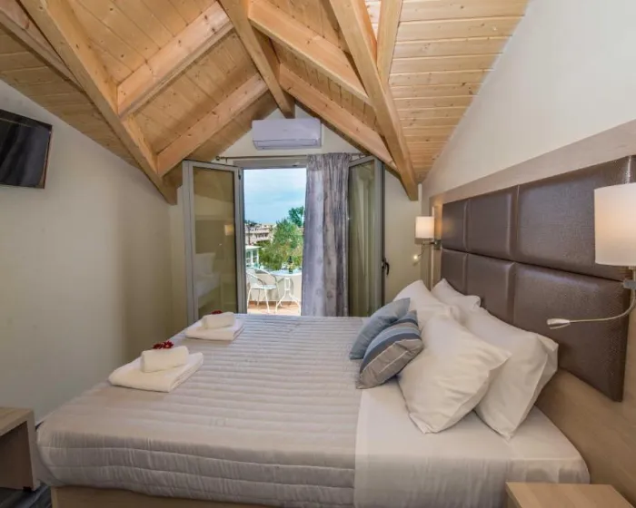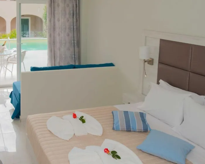 Junior Suite Pool (~25 m²) - francuski ležaj, bade mantili i papuče, aparat za kafu Nespresso, direktan pristup bazenu.