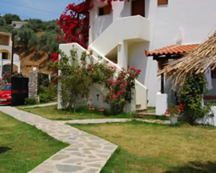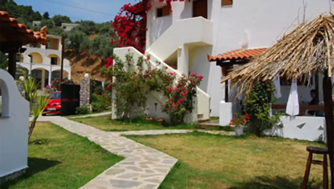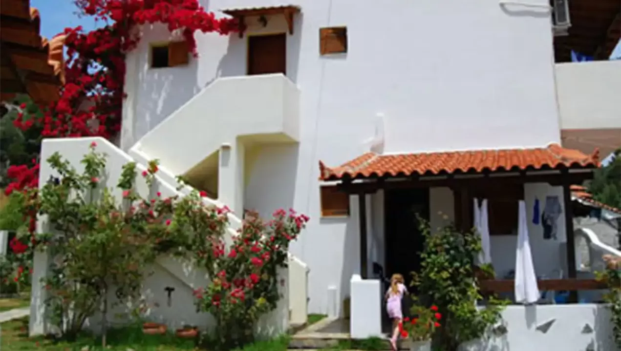 Vila Amy Skiatos se nalazi pored hotela Esperides, na nešto manje od oko dva i po kilometra od grada Skiatosa i na oko 130m od plaže Ahladia. Dvokrevetni i trokrevetni studiji su u prizemlju i na prvom spratu, okruženi lepim travnatom vrtom sa puno cveća. Veličina studija je cca 16 - 20 kvm  +  terasa. Najbliži mini market je udaljen oko 20 metara.Bez sopstvenog ležaja u studiju može boraviti dete do 5.99 godina.Korišćenje klima-uredjaja je uključeno u cenu aranžmana.