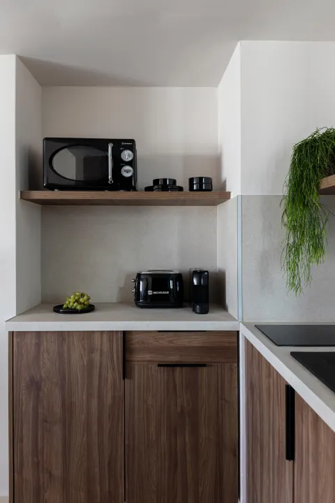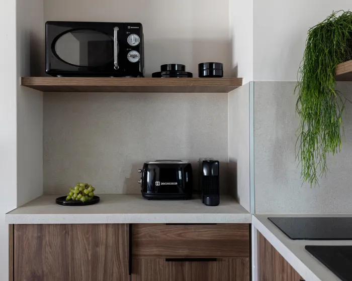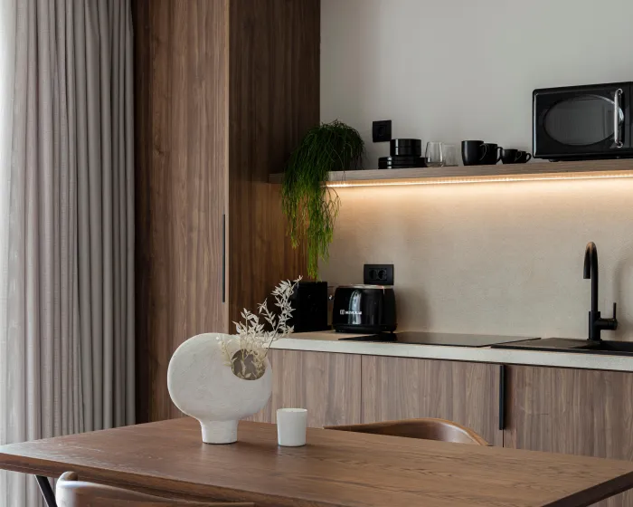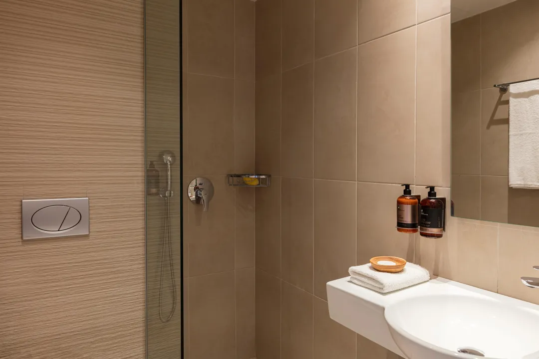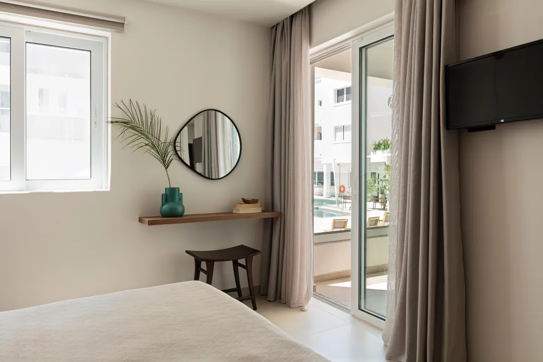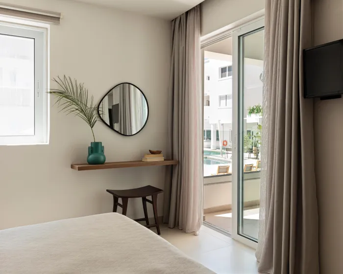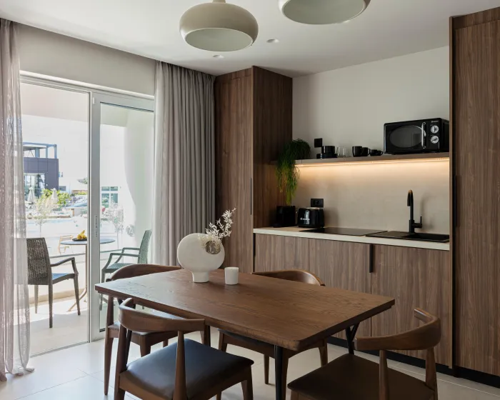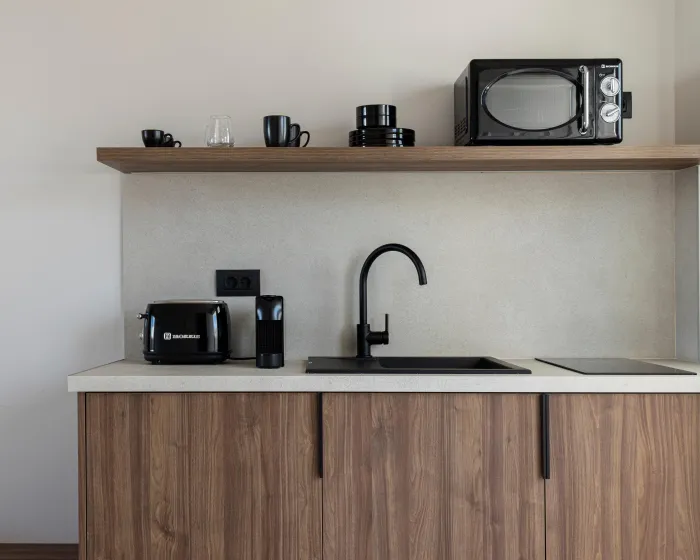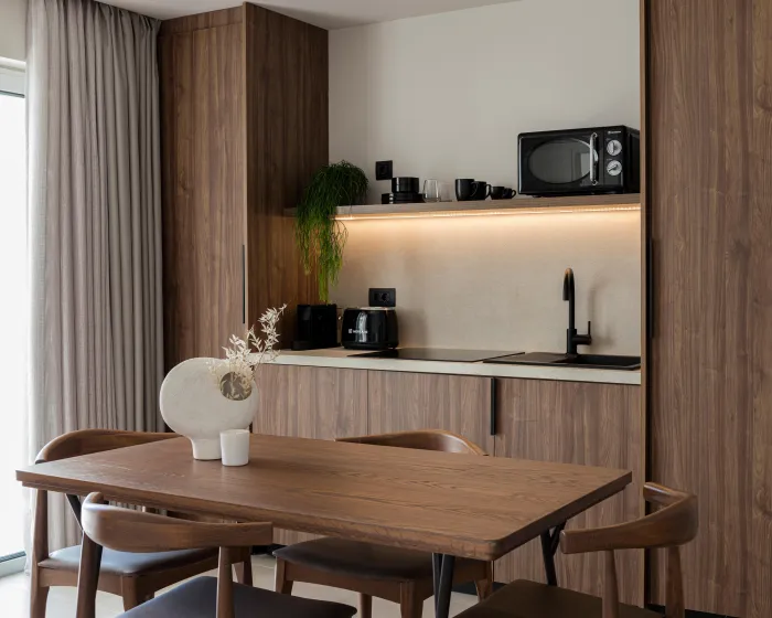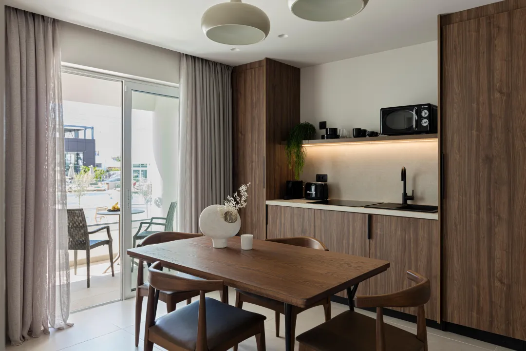 Klima uređaj i centralno grejanje osiguravaju da sobe održavaju udobnu temperaturu. Gosti mogu uživati u pogledu na vrt sa balkona ili terase. Sobe imaju bračni krevet i sofu. Dostupne su odvojene spavaće sobe. Kreveti za decu i dodatni kreveti mogu se zatražiti za mlađe goste. Sef pruža sigurno čuvanje lične imovine gostiju. Za goste koji se sami hrane, postoji dobro opremljena čajna kuhinja sa frižiderom, šporetom, aparatom za kafu/čaj i rernom. Takođe se obezbjeđuje direktna telefonska linija, TV, radio i WiFi (bez dodatne naknade). Kupatila su opremljena tušem i kadom, kao i fenom za kosu. Porodične sobe su na raspolaganju roditeljima sa decom.