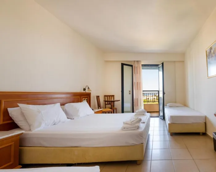 Sobe su opremljene klima uređajem i centralnim grejanjem. Gosti mogu opustiti se i uživati u delimičnom pogledu na more sa balkona ili privatne terase nekih soba. Sobe imaju bračni krevet ili sofu. Dostupne su odvojene spavaće sobe. Dodatni kreveti se mogu zatražiti. Sef i minibar su takođe na raspolaganju. Direktni telefonski poziv, TV, radio i WiFi (bez dodatne naplate) su takođe obezbeđeni. Kupatila su opremljena tušem i kadom, kao i fenom za kosu. Hotel ima porodične sobe i sobe za nepušače.
