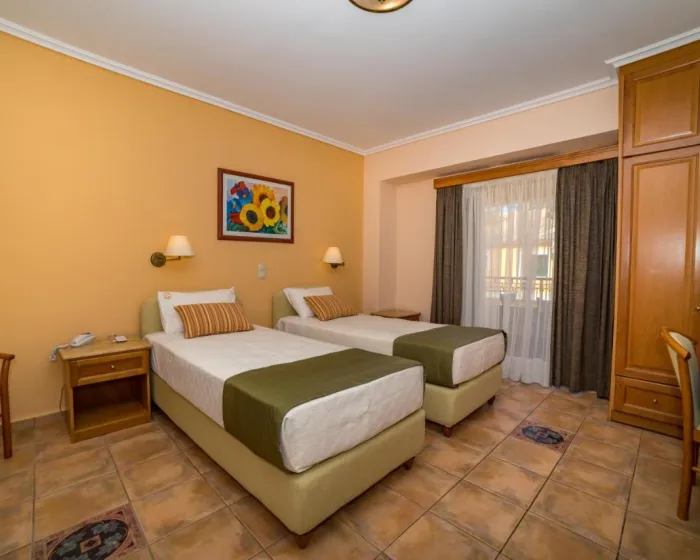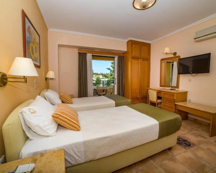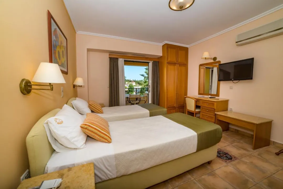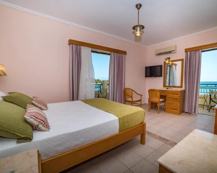 Sobe su opremljene klima uređajem i centralnim grejanjem. Gosti mogu uživati u pogledu na more sa balkona ili terase. Sobe imaju bračni krevet, krevet za jednu osobu ili kauč na razvlačenje. Dodatni kreveti mogu biti zatraženi. Takođe su dostupni sef i radni sto. Kuhinja sa frižiderom i aparatom za kafu/čaj takođe je standardno obezbeđena. Dodatno, sadržaji uključuju set za peglanje i peglu za pantalone. Takođe se pružaju direktan telefonski poziv, televizor sa satelitskim/kablovskim kanalima i WiFi (bez dodatne naknade). Kupatila uključuju fen za kosu i opremljena su tušem i kadom. Za dodatnu udobnost u kupatilima, gostima se nude kozmetički proizvodi. Mogu se rezervisati sobe prilagođene osobama sa invaliditetom. Hotel ima porodične sobe i sobe za pušenje.