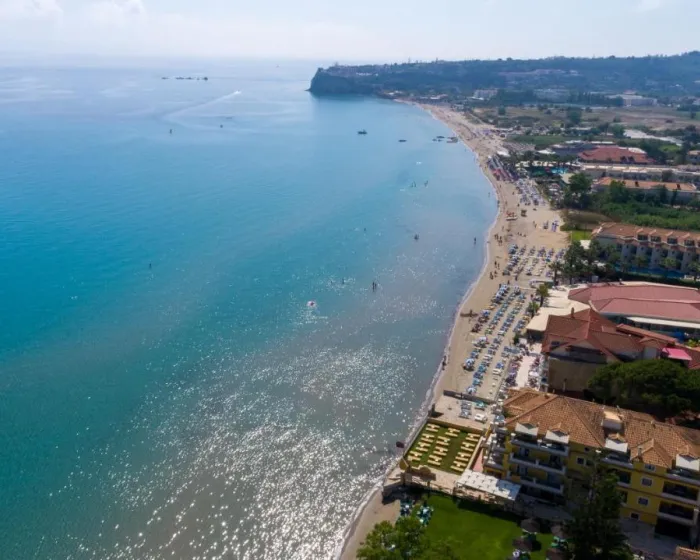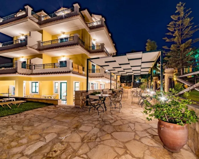 Nalazi se na plaži pored kristalnih voda plaže Tsilivi i 200 m udaljen od sela Planos, ovaj hotel na plaži, pogodan za porodice, takođe je blizu jedinstvenog i istorijskog pomorskog muzeja Milanio. Za noćni život i zabavu, selo Planos nudi pabove, barove i tradicionalne restorane. Javni prevoz i autobuska stanica su takođe dostupni za turiste. Grad Zakintos je udaljen oko 5 km od apartmanskog hotela, a međunarodni aerodrom Zakintos je udaljen oko 9 km.