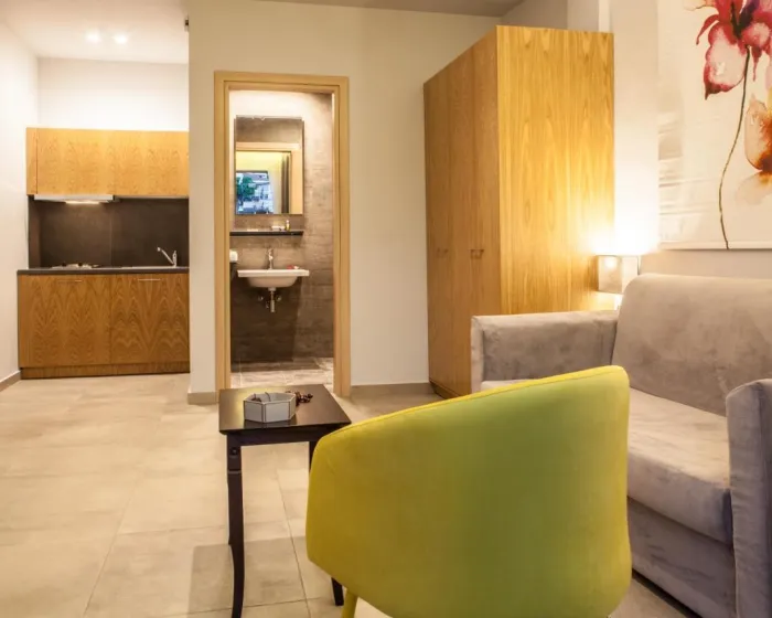 Sunčana terasa idealno je mesto za opuštanje, a gosti mogu koristiti i wellness sadržaje, uključujući solarijum.