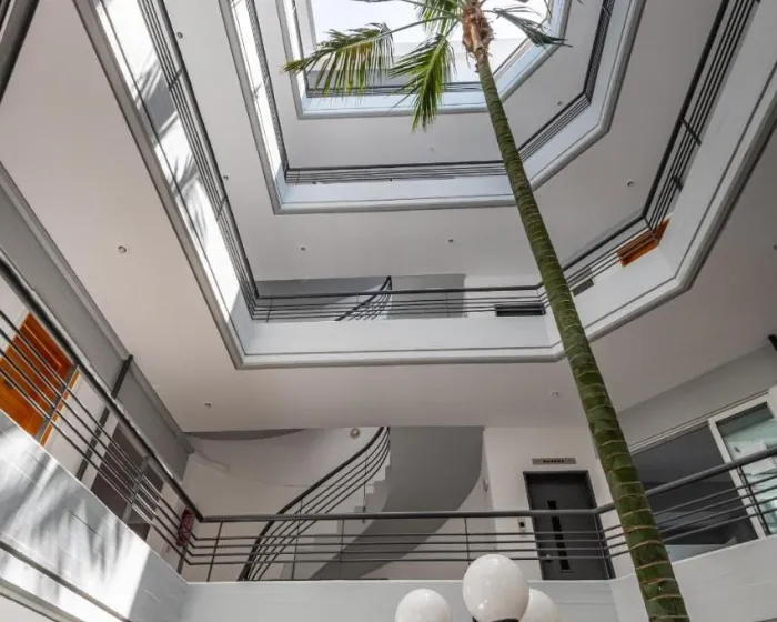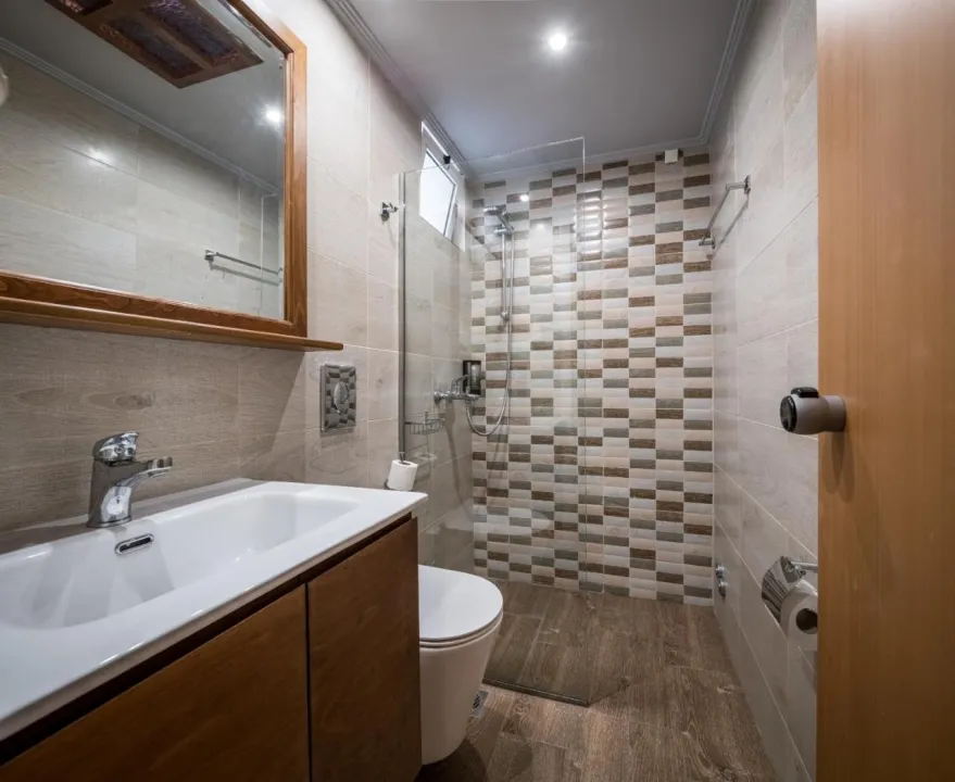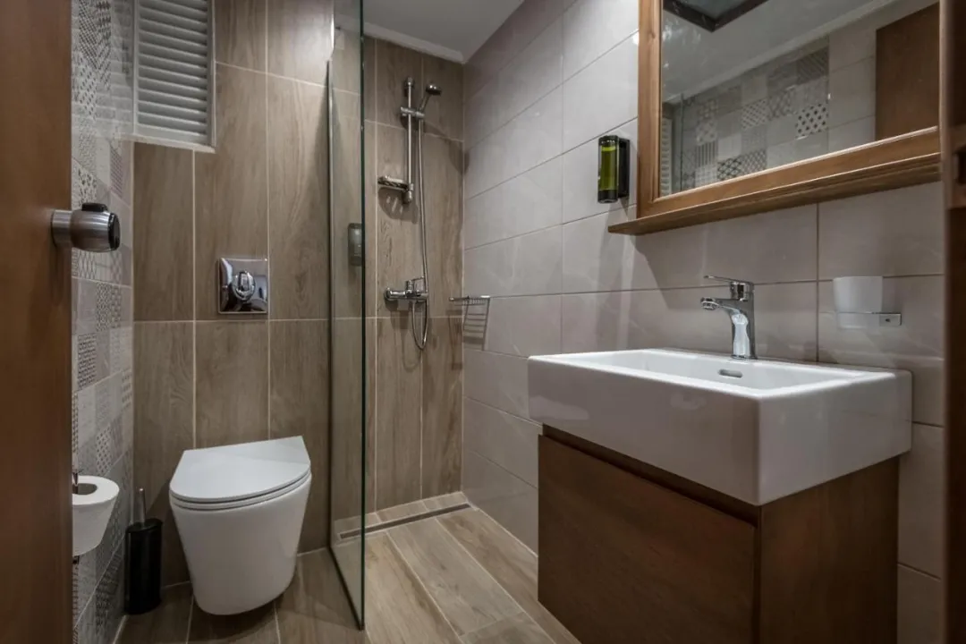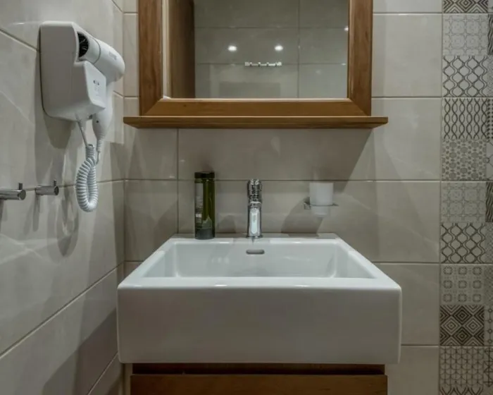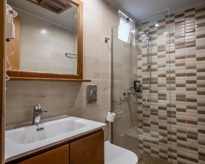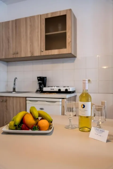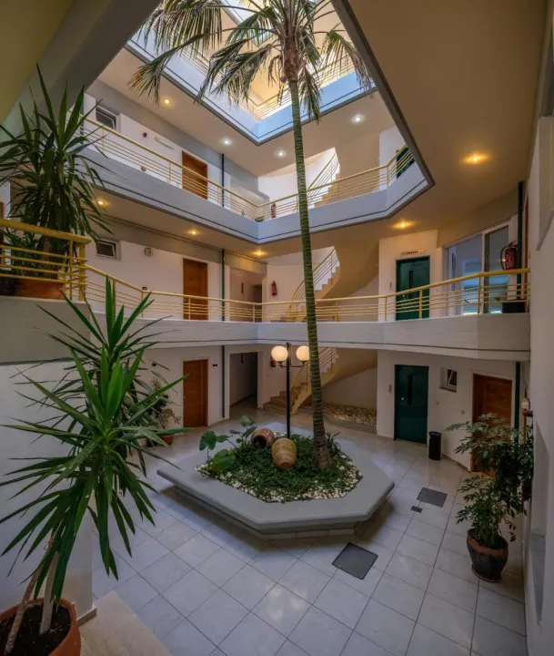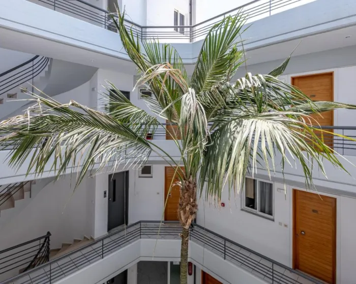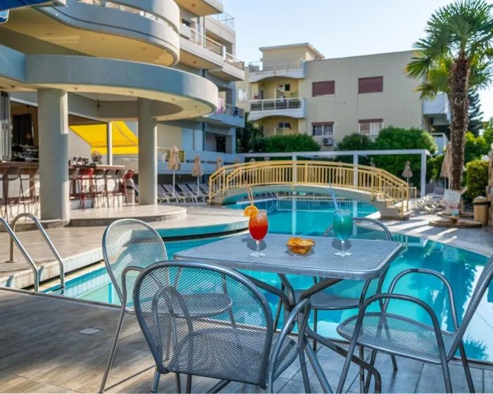 Klima uređaj i podesivo centralno grejanje osiguravaju udobne temperature u sobama. Gosti mogu uživati u pogledu na more sa balkona ili terase. Sobe imaju bračni krevet i sofu na razvlačenje. Dostupne su odvojene sobe. Dodatni kreveti mogu biti zatraženi. Na raspolaganju su sef i radni sto. Za goste koji sami sebi pripremaju hranu, postoji dobro opremljena kuhinjica sa frižiderom, mini frižiderom, šporetom i aparatom za kafu/čaj. Pegla je obezbeđena radi praktičnosti gostiju. Takođe su obezbeđeni direktni telefonski poziv, televizor sa satelitskim/kablovskim kanalima, radio, CD plejer i WiFi (bez dodatne naplate). Kupatila su opremljena tušem i kadom, kao i fenom za kosu. Kozmetički proizvodi i izbor peškira pružaju dodatnu udobnost u kupatilima. Apartmanski hotel ima porodične sobe i sobe za nepušače.