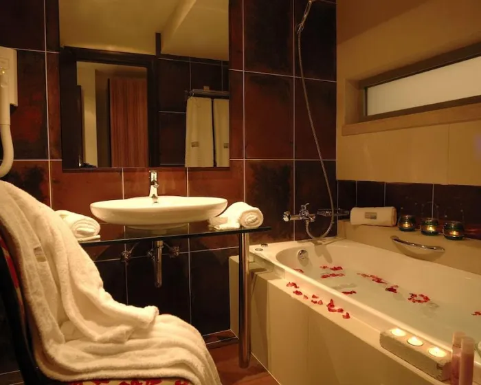 Postoje unutrašnji i spoljni bazeni i deo za kupanje za decu. Gosti se mogu počastiti osvežavajućim pićima u baru pored bazena i opuštajućim hidromasažnim kadom. Na raspolaganju su sunčana terasa, ležaljke i suncobrani. Gostima koji žele da budu aktivni na raspolaganju su golf i jahanje. Ljubiteljima vodenih sportova se nude ronjenje. Gosti mogu uživati u raznovrsnim unutrašnjim sportovima, uključujući teretanu, bilijar, kalisteni i aerobik. U hotelu su dostupne različite wellness opcije, uključujući spa, saunu, parno kupatilo, hamam, salon lepote, tretmane masaže i solarijum. Nema delova autorskih prava na koje sam naišao. Multijezički, powered by www.giata.com for client no. 124971