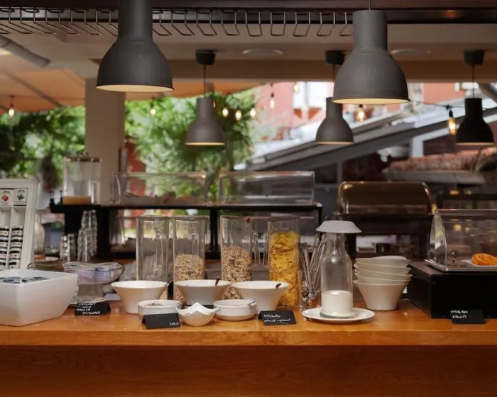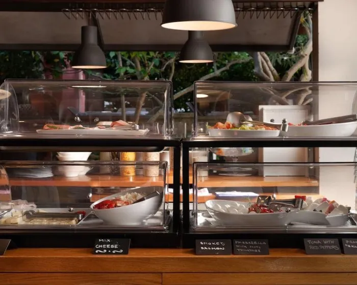 Ugostiteljski sadržaji uključuju kafe i bar. Osvežavajući doručak se služi svakodnevno. Posebni obroci, uključujući dijetne obroke, takođe su dostupni. Hotel takođe nudi posebne opcije za ketering.