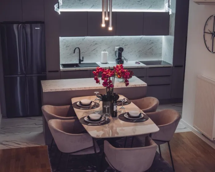 Prostrani apartman sa balkonom i pogledom na baštu ima 2 spavaće sobe, dnevnu sobu, flat-screen TV, opremljenu kuhinju sa mašinom za pranje sudova i rernom, kao i 1 kupatilo sa tušem. Peškiri i posteljina se nude u apartmanu. Radi veće privatnosti, smeštajna jedinica ima zaseban ulaz i zvučnu izolaciju.