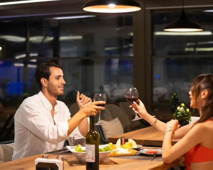 Različite opcije obroka su dostupne, uključujući restoran, kafić i bar. Hranljiv doručak se poslužuje svakodnevno. Osoblje će takođe rado pripremiti obroke za decu.