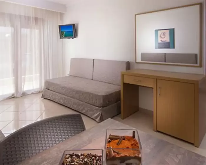 kupatilo, peškiri, opremljena mini-kuhinja, frižider, klima-uredjaj, SAT-TV, sef, terasa sa garniturom za sedenje
