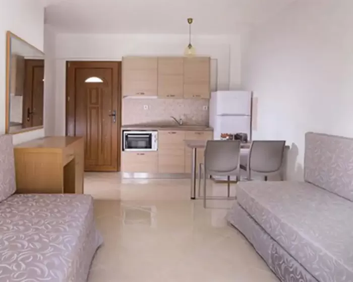 Apartman sa jednom spavaćom sobom Oko 35 m². Sastoje se od zasebne spavaće sobe sa francuskim ili dva singl ležaja i dnevne sobe sa sofama i kuhinjskim delom. Namenjeni za 1-5 osoba.
