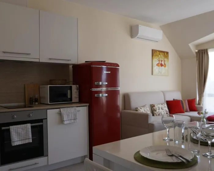 Nudeći terasu ili balkon sa pogledom na more i bazen, jedinice imaju klima uređaj, prostor za sedenje, kablovsku flat-screen TV i kuhinju. Rerna, toster i frižider takođe su obezbeđeni, kao i aparat za kafu i čajnik. U apartmanskom kompleksu, svaka jedinica uključuje posteljinu i peškire.