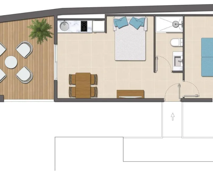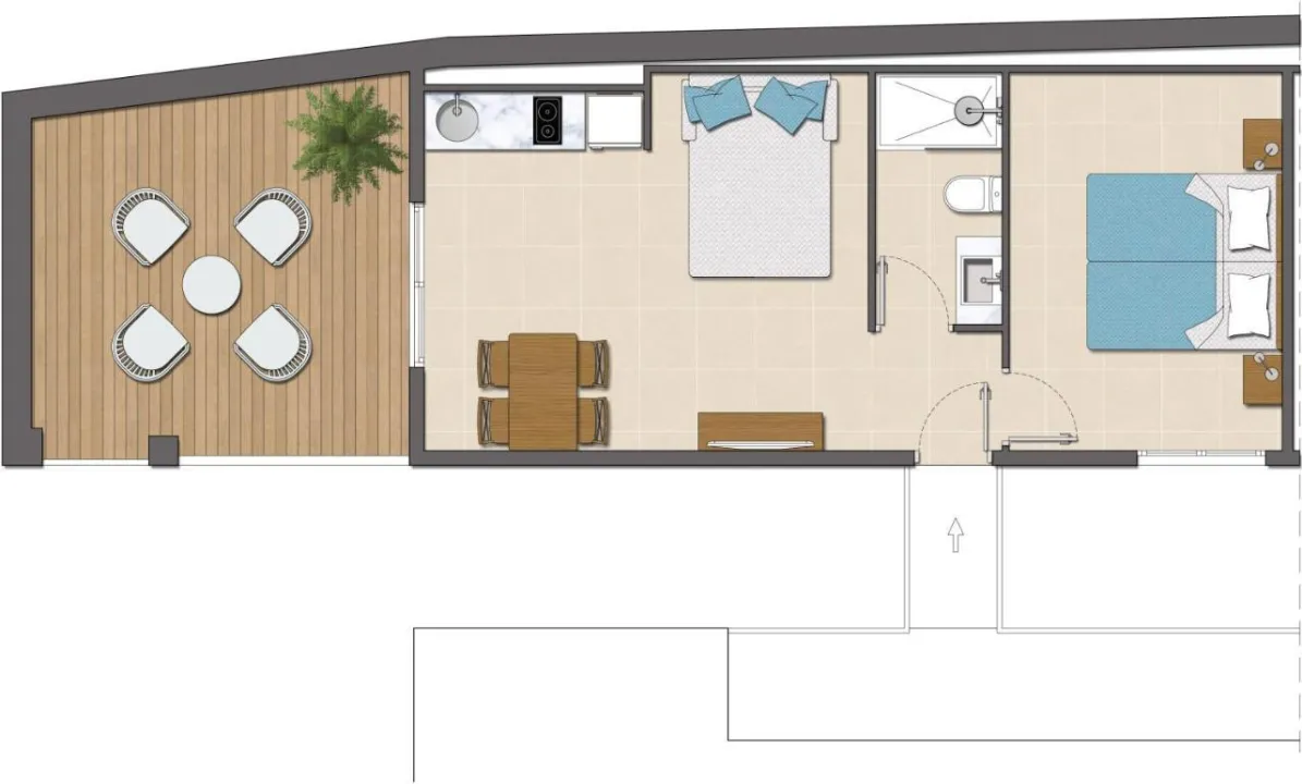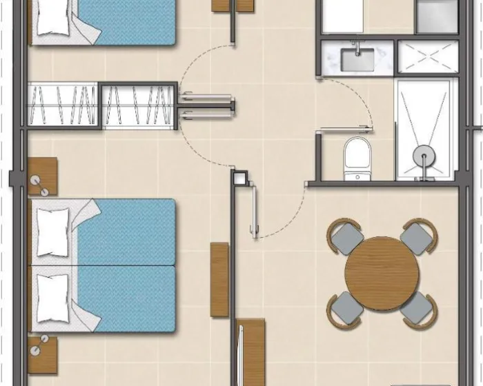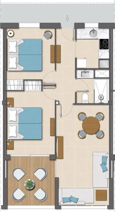 Većina soba uključuje balkon ili terasu kao standardnu opciju. Gostima je zagarantovan dobar san na sofi krevetu. Dodatni kreveti mogu biti zatraženi. Kuhinja sa frižiderom, mikrotalasnom pećnicom i aparatom za čaj/kafu takođe je obezbeđena kao standardna. Pegla je dostupna zbog praktičnosti gostiju. Televizor sa satelitskim/ kablovskim kanalima i WiFi (bez dodatne naplate) su takođe obezbeđeni. Kupatila su opremljena tušem. Smeštaj ima porodične sobe i nepušačke sobe.