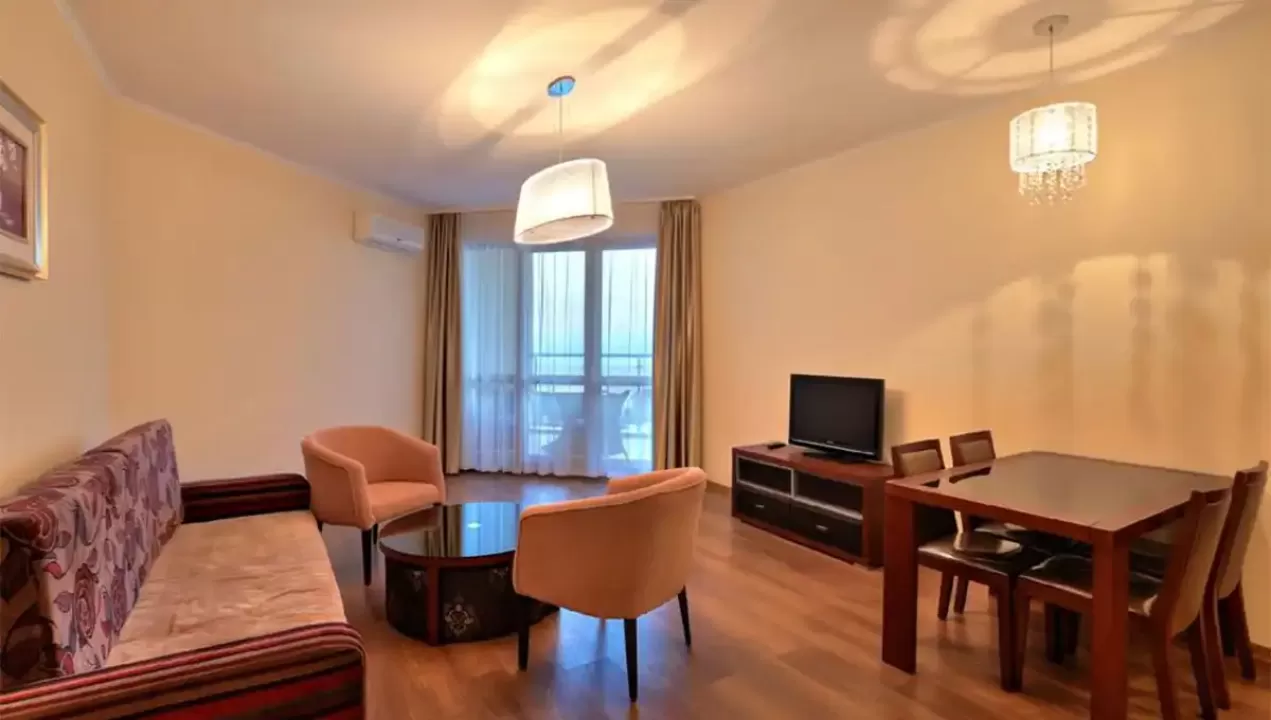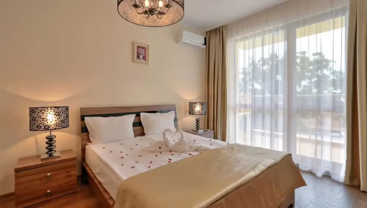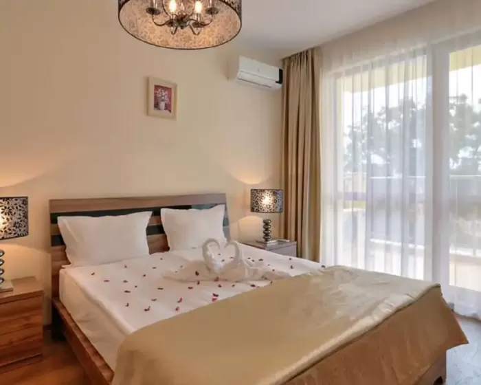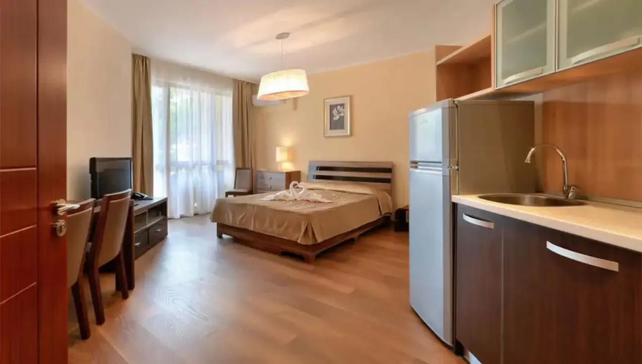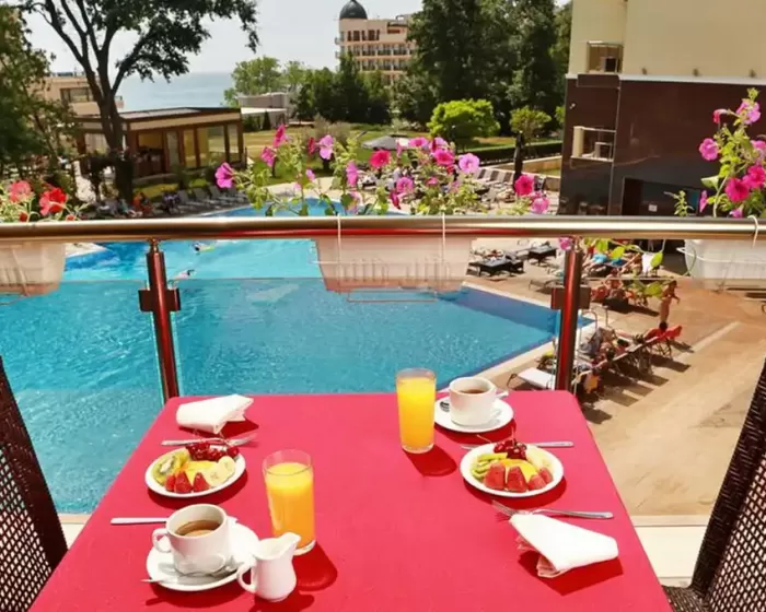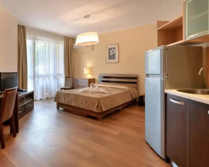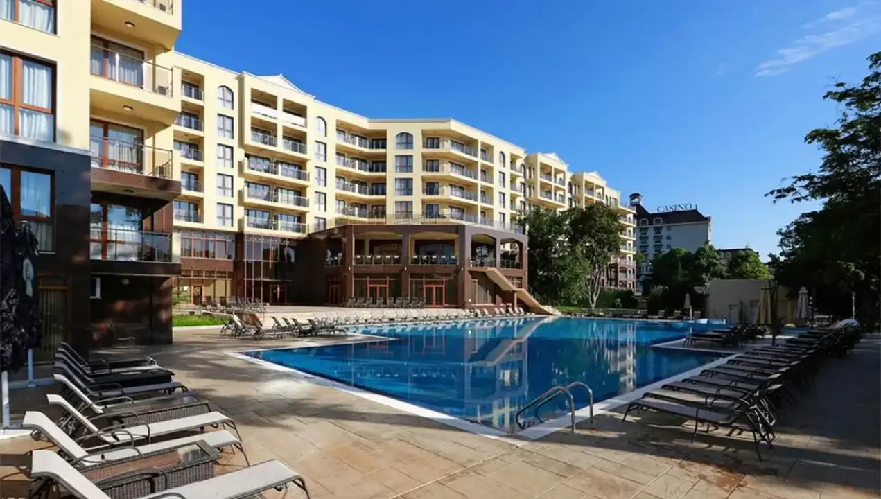 Aparthotel Golden Line Zlatni Pjasci se nalazi u odmaralištu Zlatni Pjasci, na oko 100 metara od mora. Glavno šetalište je udaljeno oko 70 m, a autobuska stanica oko 300 m. Aerodrom u Varni je udaljen oko 25 kilometara i do njega se može doći shuttle busom koji je dostupan na zahtev. Sva javna mesta i sobe su nepušačke zone.
