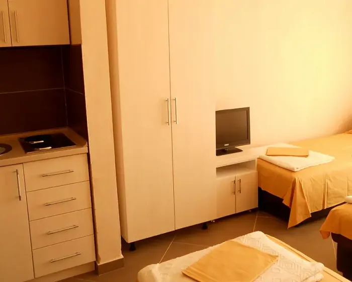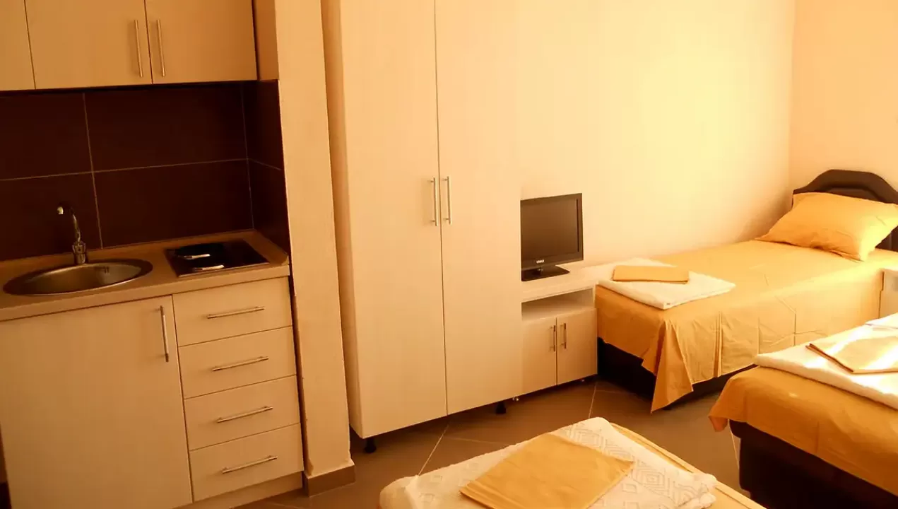 kupatilo, opremljena mini-kuhinja, klima-uredjaj, SAT TV, balkon sa garniturom za sedenje