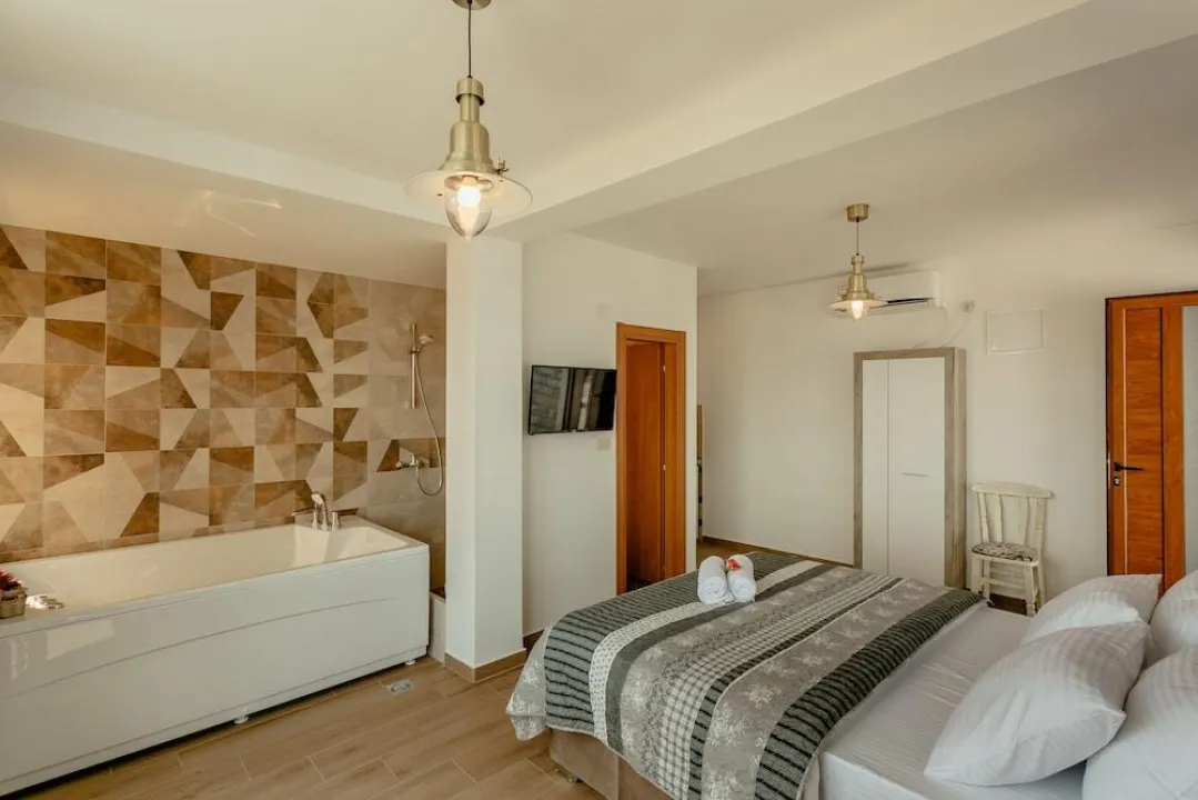 Osećajte se kao kod kuće u jednom od 2 klimatizovana apartmana sa privatnim đakuzijem i flat-screen televizorima. Kuhinje su opremljene frižiderima i ringlama. Besplatan bežični internet vam omogućava da ostanete povezani, a na raspolaganju vam je i kablovska televizija za zabavu. Privatne kupatila sa odvojenom kadom i tušem sadrže hidromasažne kade i besplatne toaletne potrepštine.