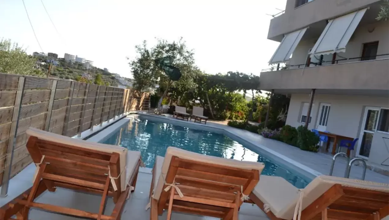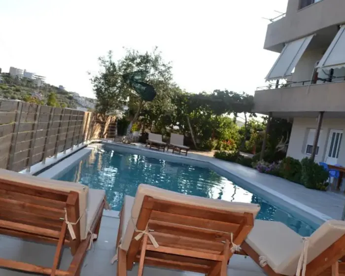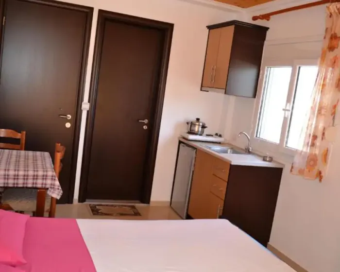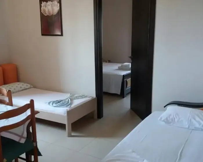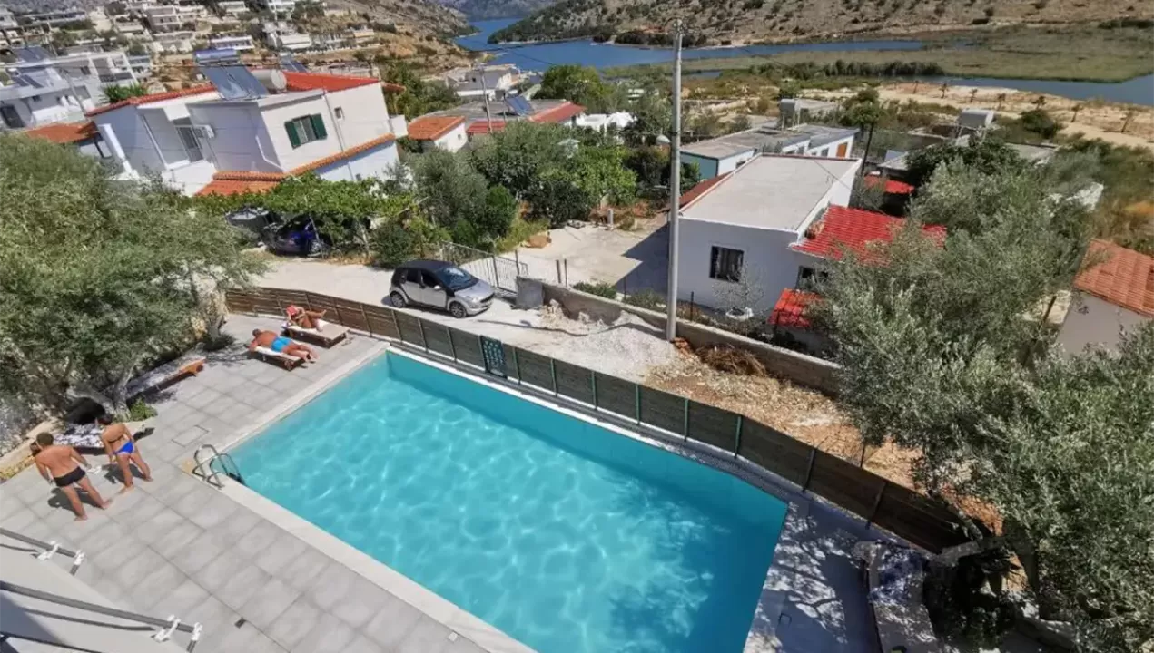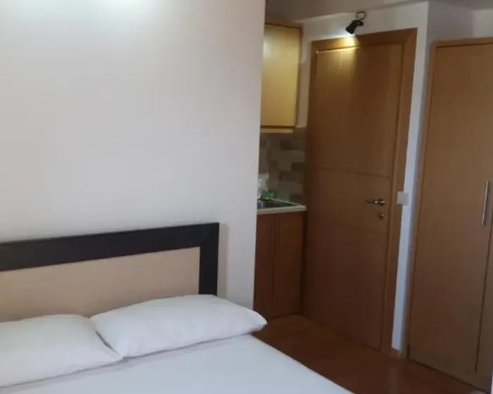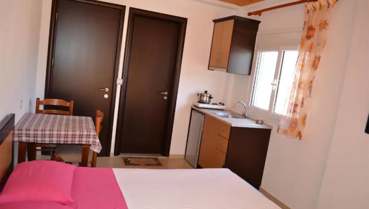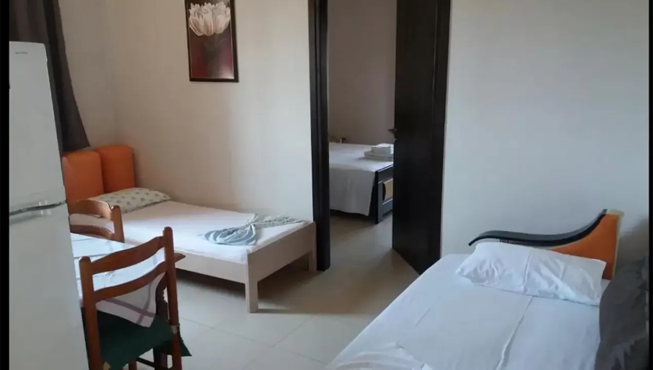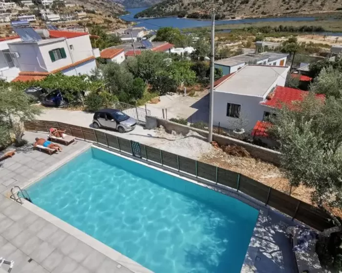 Apartmani Ksamil Albanija se nalaze iznad glavnog puta koji prolazi kroz letovalište Ksamil, pozicionirani na 100 metara udaljenosti od velikog marketa Djordeni, i na 550 metara udaljenosti od centralne gradske Ksamil plaže. Kako se nalaze u centru ovog popularnog letovališta, u neposrednoj blizini objekta su svi turistički sadržati, te apartmane Ksamil preporučujemo i gostima na autobuskom prevozu. Tu su market, apoteka, pekara, veći broj restorana i barova, prodavnica sportske opreme, kao i taksi stanica i stanica autobusa. U svom sastavu za rekreaciju gostiju je na raspolaganju otvoreni bazen, i terasa za sunčanje sa ležaljkama i suncobranima na raspolaganju samo gostima vile. Apartmani mogu da ugoste do pet osoba.