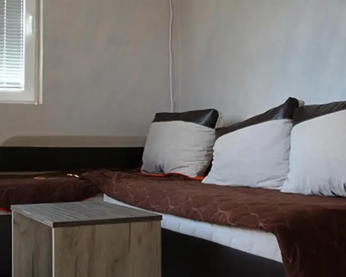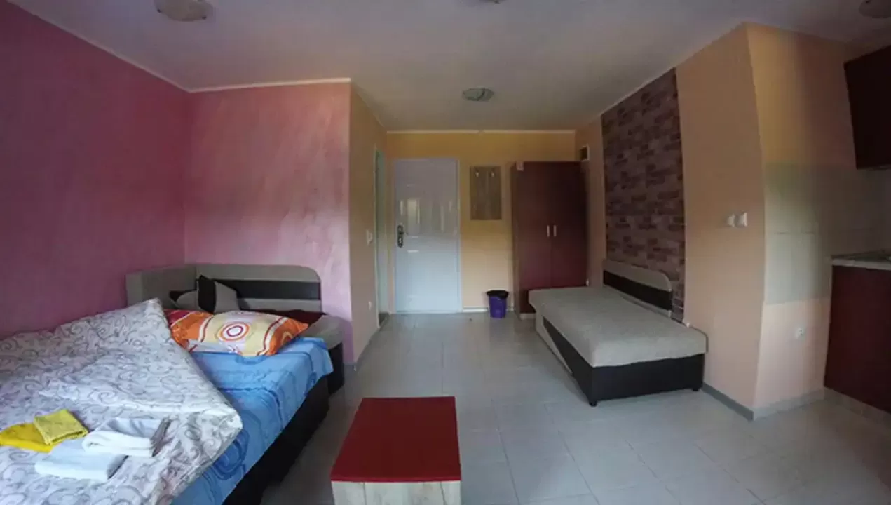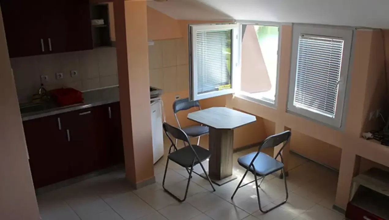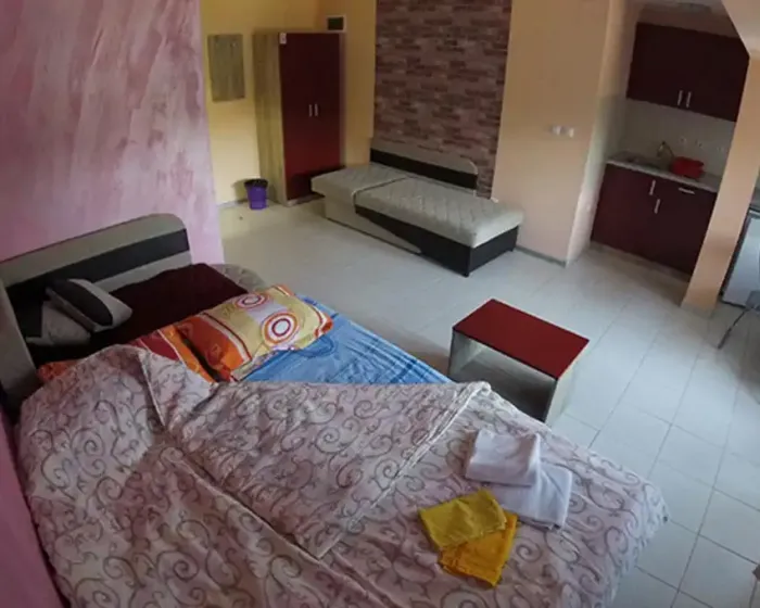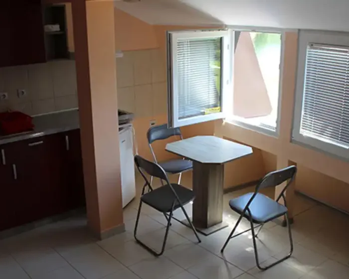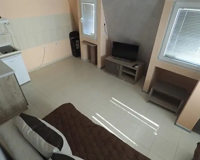 Jednosobni apartmanApartman je opremljen sa dva ležaja, jednim bračnim i jednim krevetom za jednu osobu i prima najviše 3 odrasle osobe. Apartman ima kuhinju i kupatilo, klimu, TV i za goste je obezbedjen parking prostor.Dvosobni apartmanDvosobni apartman je opremljen sa dva ležaja za najviše 4 odrasle osobe, ima kuhinju i kupatilo, televizor i za goste je obezbeđen parking prostor. Jedan ležaj nalazi se u dnevnoj sobi, a drugi u spavaćoj sobi. Apartman je klimatizovan.
