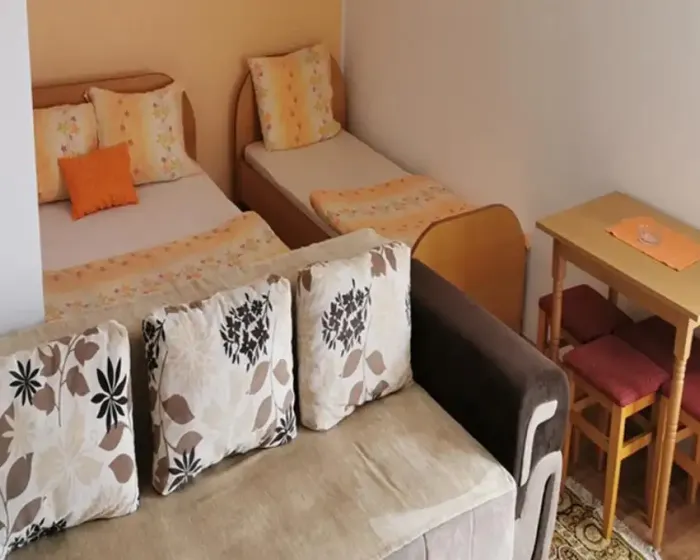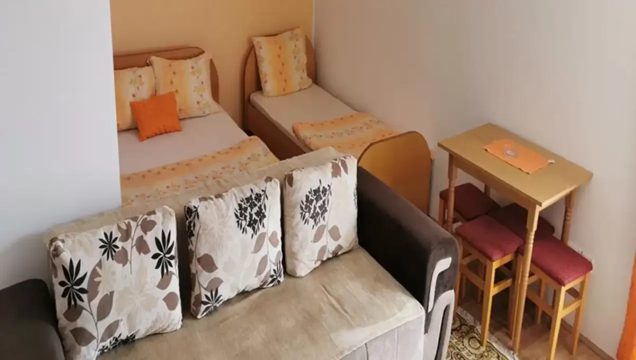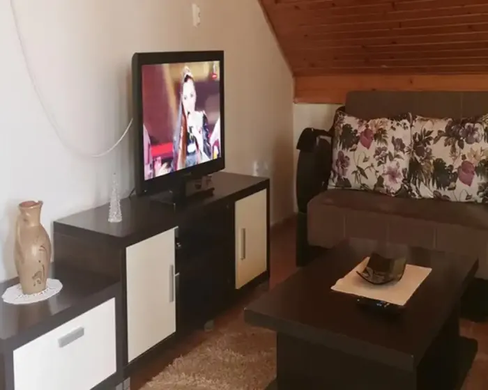 kupatilo, mini kuhinja, frižider, klima-uredjaj, TV, balkon sa garniturom za sedenje