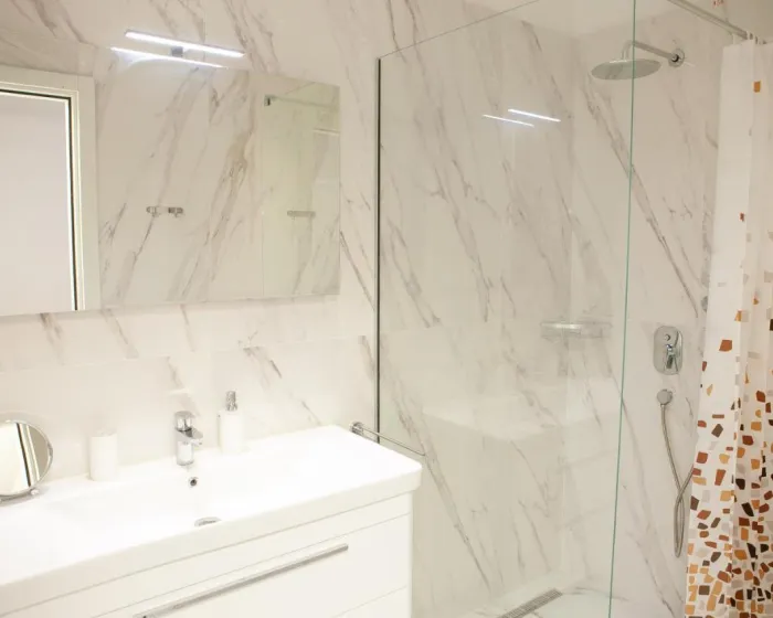 Apartman sa terasom i pogledom na more ima 1 spavaću sobu, dnevnu sobu, flat-screen TV, opremljenu kuhinju sa šporetom i frižiderom, kao i 1 kupatilo sa tušem. Peškiri i posteljina se nalaze u apartmanu.
