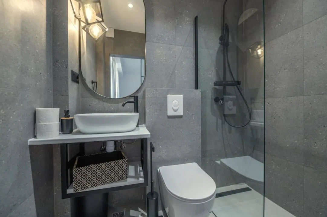 Klimatizovani apartman se sastoji od 2 spavaće sobe, potpuno opremljene kuhinje i 2 kupatila. Na raspolaganju je TV ravnog ekrana.