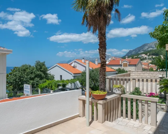 Apartmani Relax Brela - Studio nude smeštaj sa terasom i pogledom na more, na oko 300 metara udaljenosti od plaže Berulia.