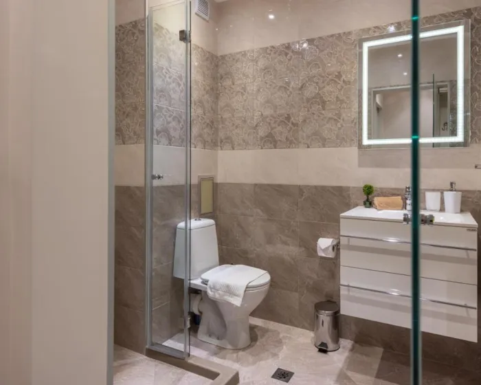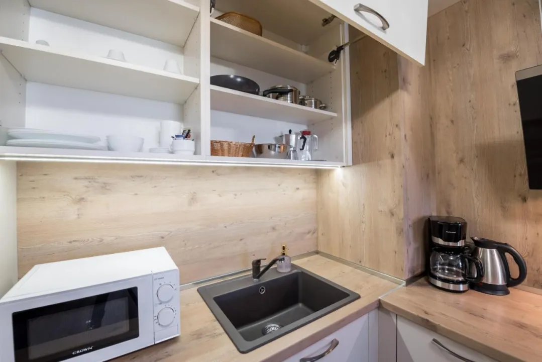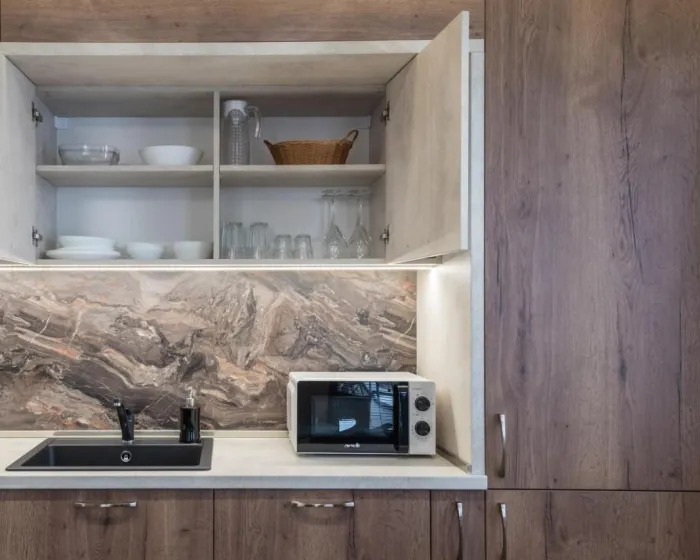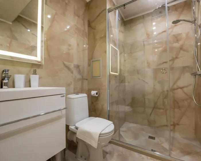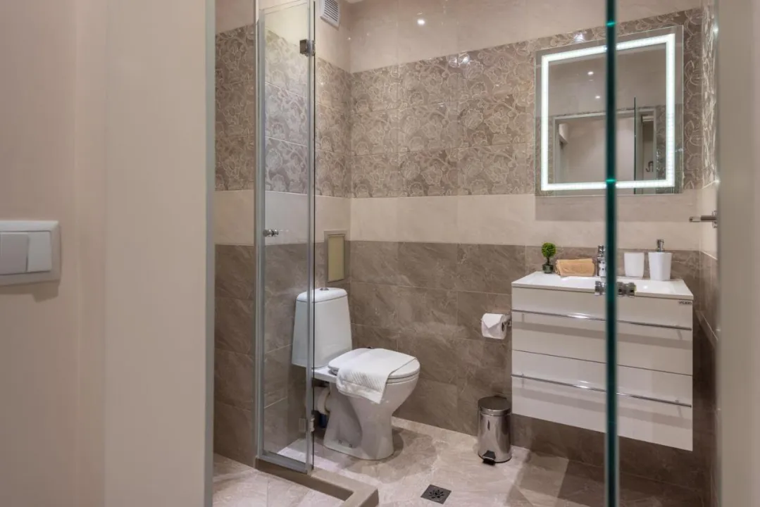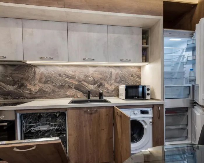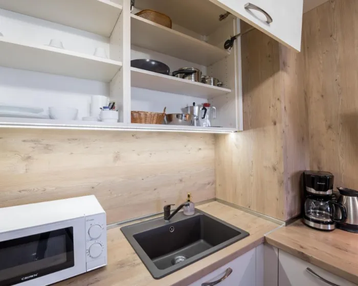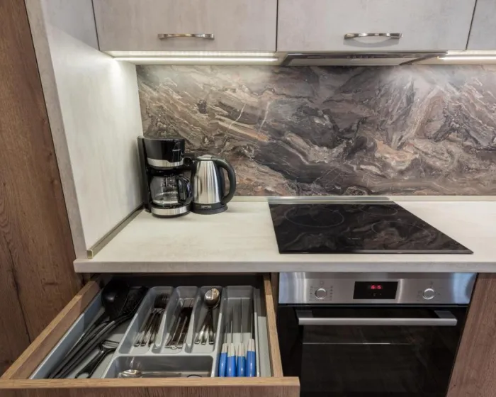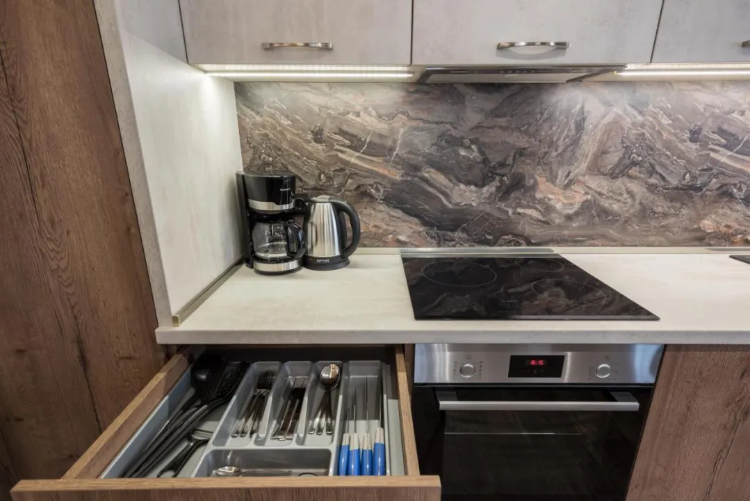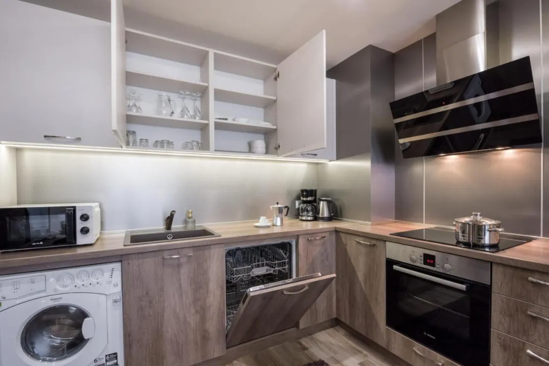 Apartman gostima pruža terasu, pogled na more, prostor za sedenje, kablovsku flat-screen TV, potpuno opremljenu kuhinju sa mašinom za pranje sudova i rernom, kao i privatno kupatilo sa tuš kabinom i fenom za kosu. Mikrotalasna pećnica, frižider i šporet takođe su dostupni, kao i aparat za kafu i čajnik. U apartmanskom kompleksu, jedinice dolaze sa posteljinom i peškirima.