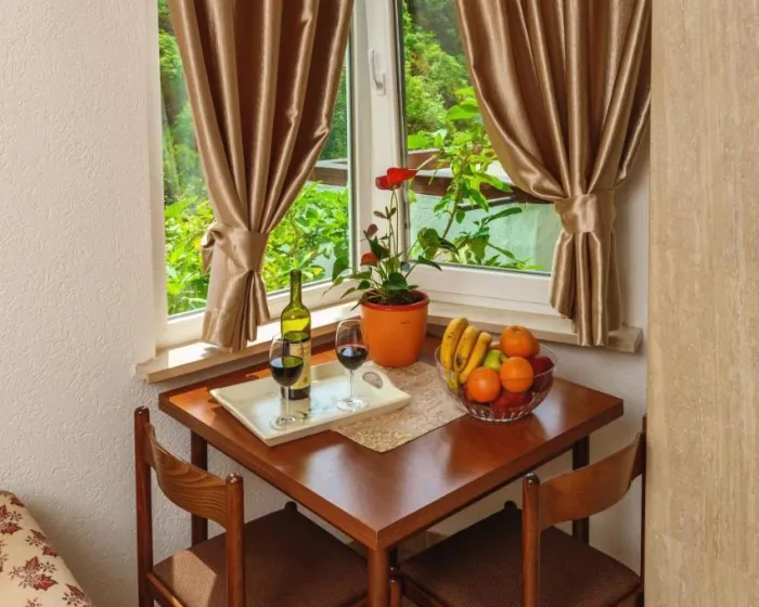 Sobe imaju bračni krevet i kauč na razvlačenje. Dodatni ležajevi mogu biti zatraženi. WiFi (bez dodatne naplate) omogućava dodatnu udobnost. Kompleks ima porodične sobe i sobe za nepušače.