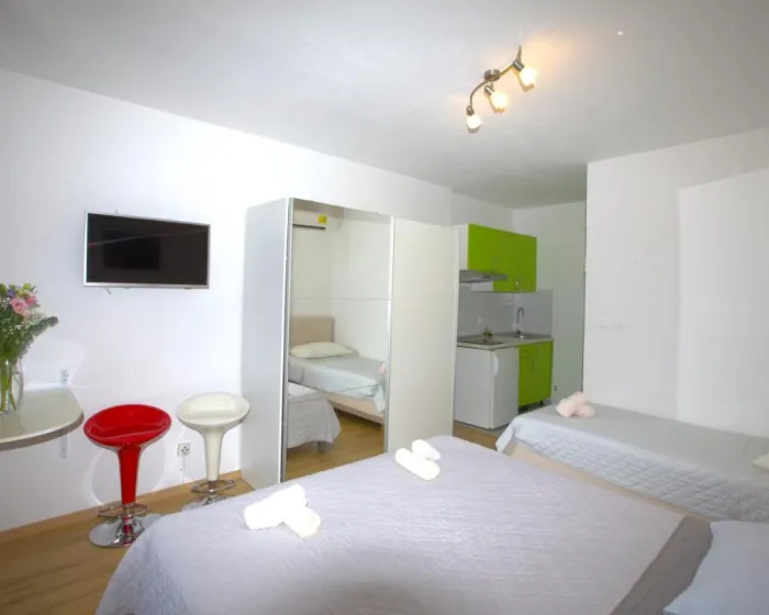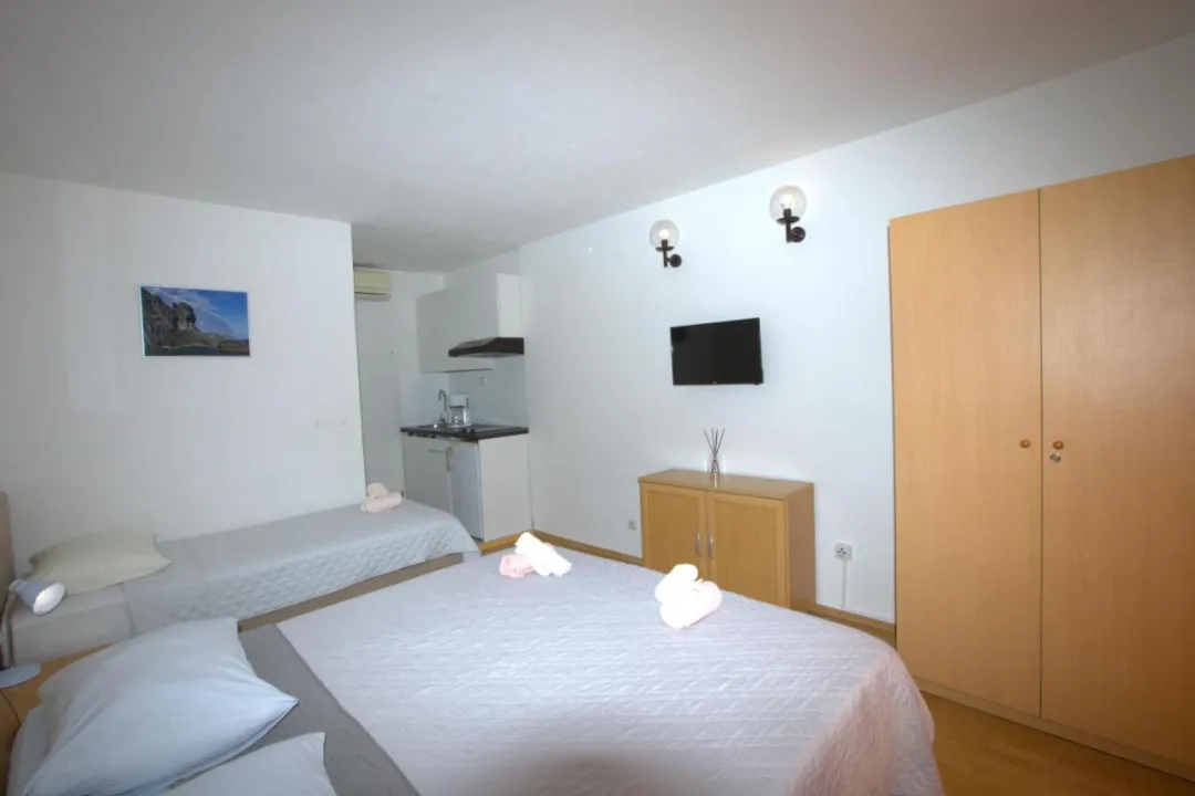 Smestaj se nalazi na 200 metara od plaže Podluka i 200 metara od plaže Berulia, Marios nudi sobe sa klima uređajem i privatnim kupatilo