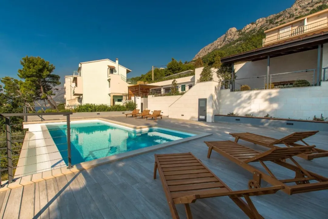 Apartmani Matko's Oasis nalaze se u Brelima, samo 300 metara od plaže Jakiruša, i nude smeštaj sa pogledom na more, besplatan WiFi i besplatan parking. Sa pogledom na planinu, smeštaj obuhvata balkon i bazen. Ovaj trospratni apartman nudi privatni ulaz.