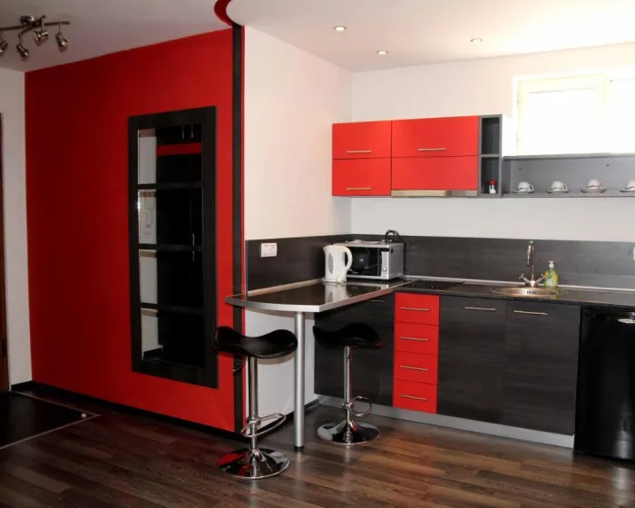 Svi apartmani su klimatizovani i sadrže kuhinjske pogodnosti poput mikrotalasne pećnice ili frižidera. Besplatan pristup internetu i LCD satelitska TV su takođe dostupni. Apartmani imaju balkon, gde gosti mogu uživati u panoramskom pogledu na grad.