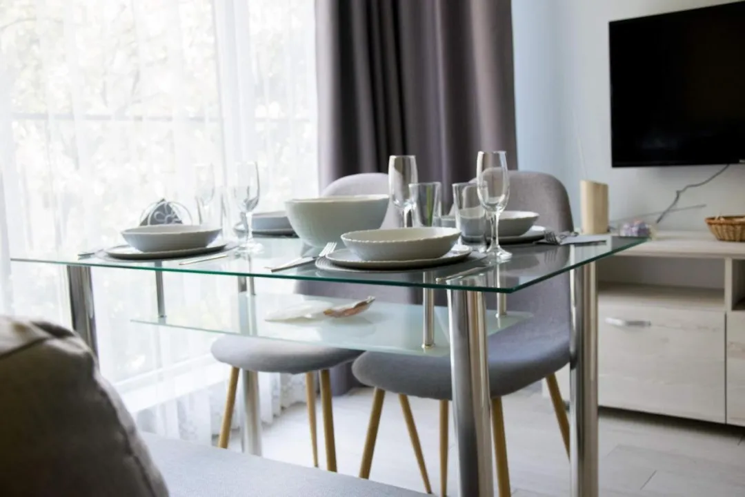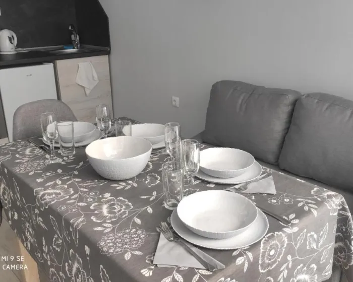 Apartman gostima pruža terasu, pogled na mirnu ulicu, prostor za sedenje, kablovsku ravnu televiziju, potpuno opremljenu čajnu kuhinju sa rernom i mikrotalasnom pećnicom, kao i privatno kupatilo sa tušem i fenom za kosu. Frižider, šporet i posuđe su takođe dostupni, kao i čajnik. U apartmanskom kompleksu, svaka jedinica je opremljena posteljinom i peškirima.
