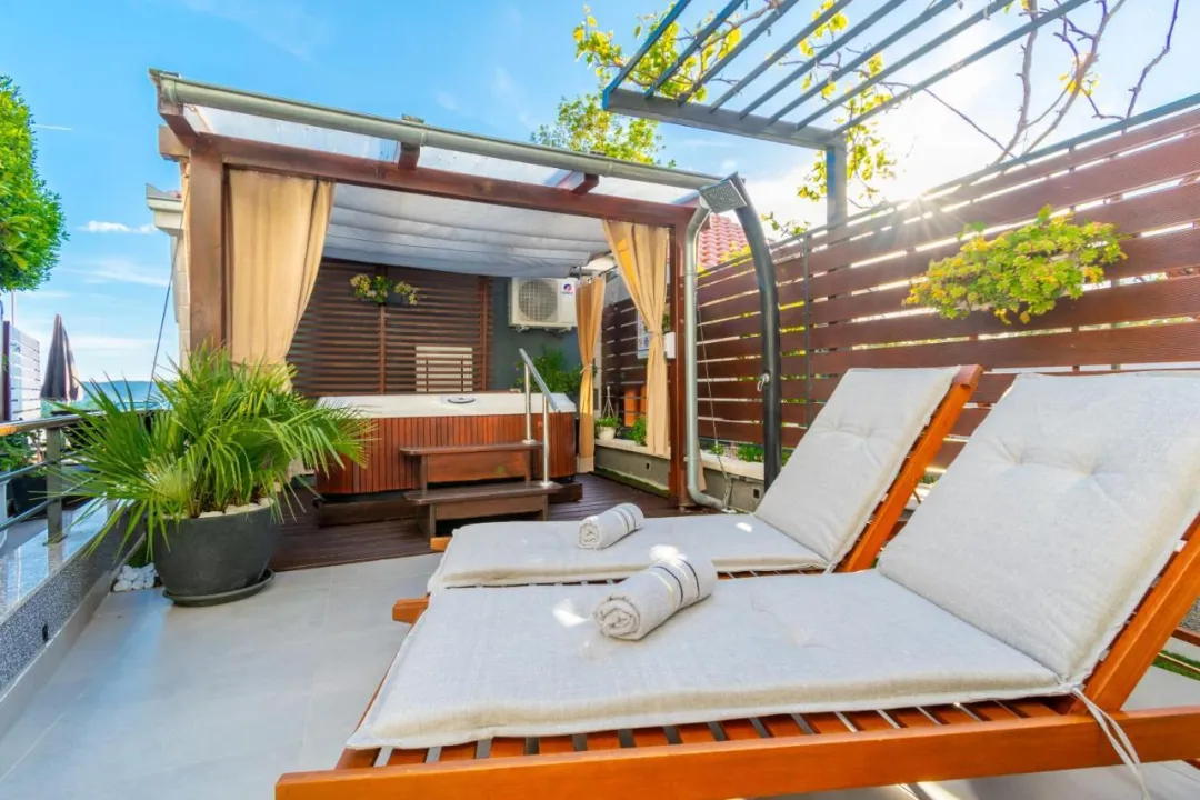 Apartman gostima pruža terasu, pogled na more, prostor za sedenje, televizor sa satelitskim flat-screenom, potpuno opremljenu kuhinju sa rernom i mikrotalasnom rernom, kao i privatno kupatilo sa tušem i papučama. Toster, frižider i šporet takođe su dostupni, kao i aparat za kafu i čajnik. U apartmanskom kompleksu, jedinice su opremljene posteljinom i peškirima.