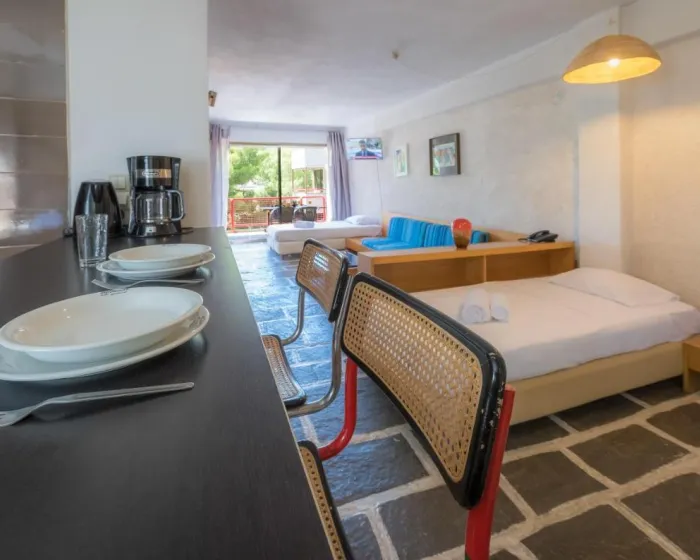 Sobe su opremljene klima uređajem i centralnim grejanjem. Gosti mogu uživati u pogledu na planine sa balkona ili terase. Sobe uključuju bračni krevet. Dostupne su odvojene spavaće sobe. Dodatni kreveti mogu biti zatraženi. Stol je obezbeđen. Potpuno opremljena kuhinja sa frižiderom, šporetom, mikrotalasnom pećnicom i čajnom/kafeservisom, kao i kompletan set posuđa, standardna je karakteristika. Pegla je obezbeđena radi gosteve praktičnosti. Telefonom, flat-screen televizorom i WiFi (bez dodatnih troškova) su takođe obezbeđeni. Gosti mogu da iskoriste uslugu večernje pospremanje sobe. Fen za kosu je obezbeđen u kupatilima. Za dodatnu udobnost u kupatilima, gostima se nude kozmetički proizvodi. Mogu se rezervisati sobe prilagođene za invalidska kolica. Hotel ima porodične sobe i sobe za nepušače.