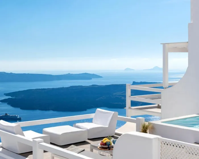 Centrally located in Imerovigli, this complex is about 15 km from the beach.