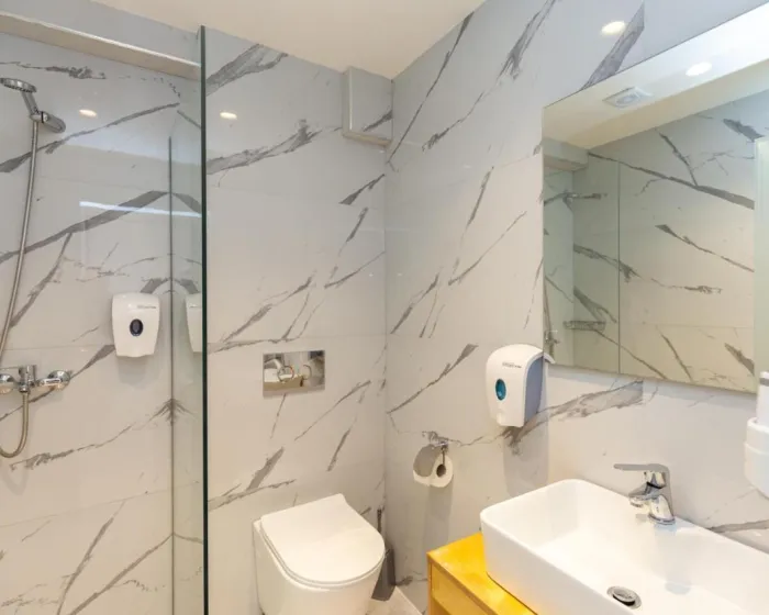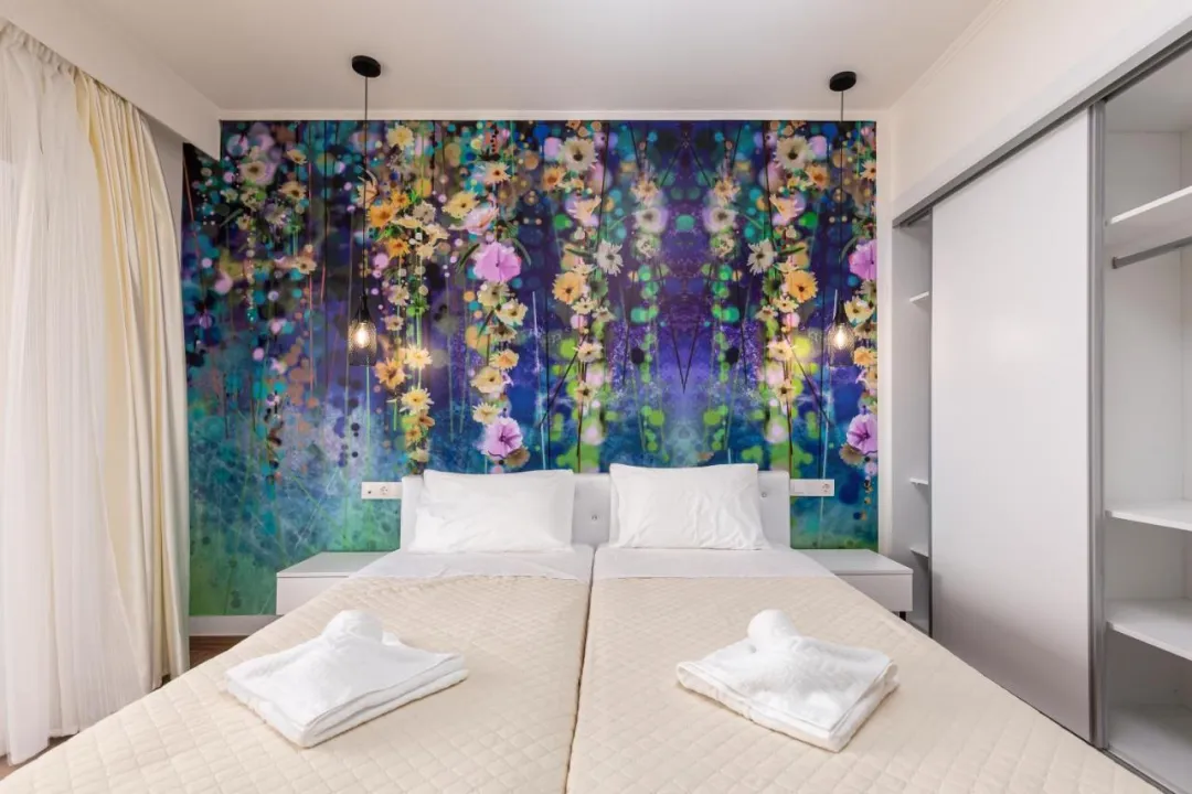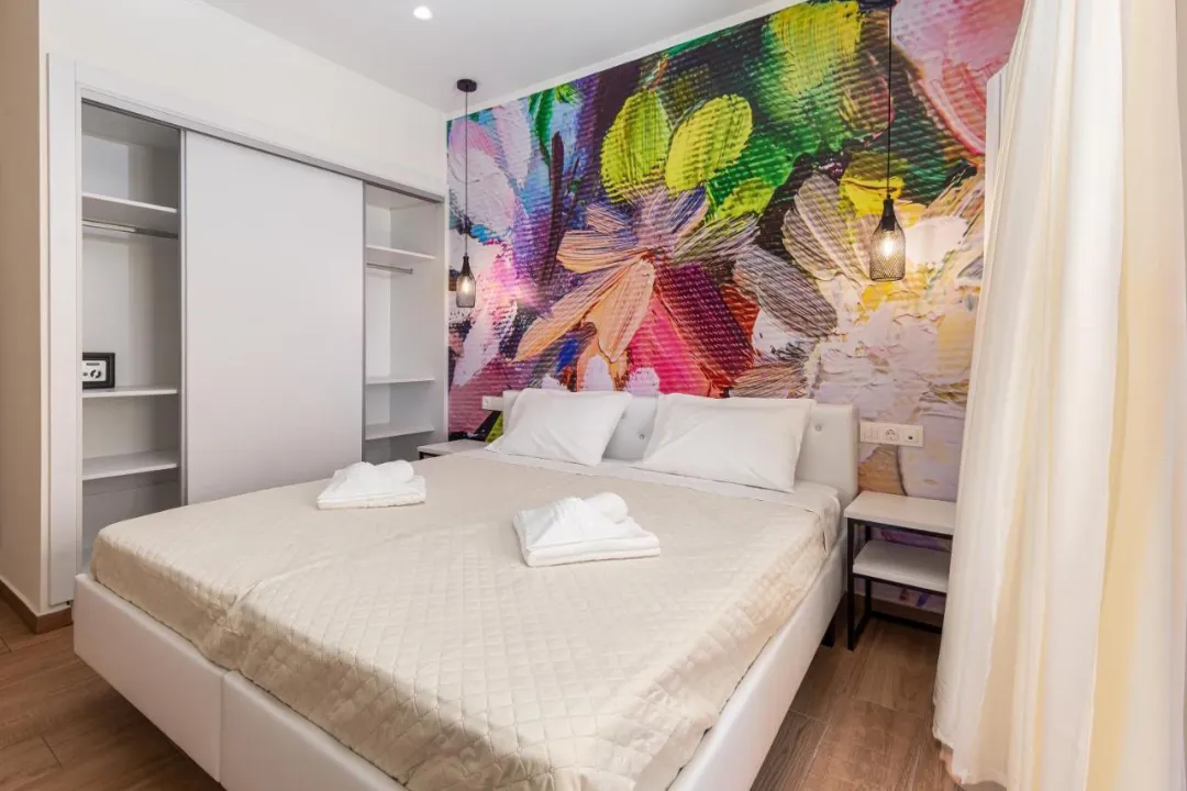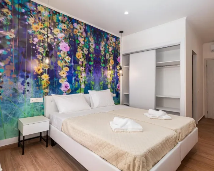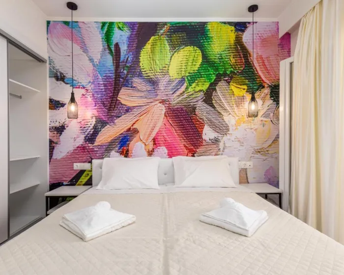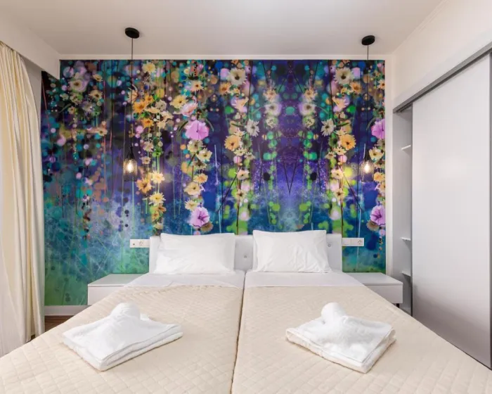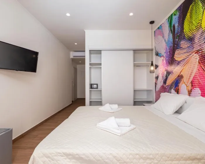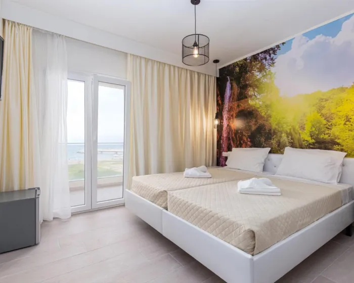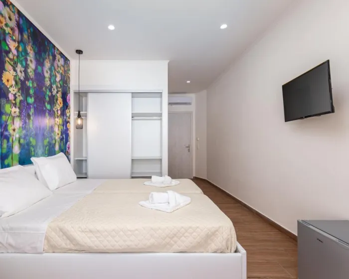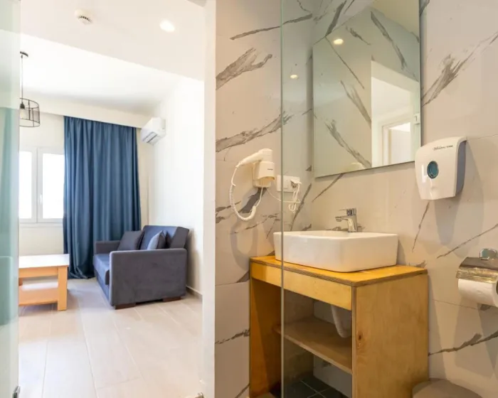 Rooms include air conditioning and central heating. In most units, guests can enjoy a view of the sea from a balcony or terrace. The rooms have a double bed and a sofa bed. Guests can also book separate bedrooms. Children's beds and extra beds can be requested for younger guests. A safe provides secure storage for guests' personal property. For guests' convenience, units include a refrigerator and a mini fridge. An ironing set is provided for guests' convenience. Other features include a telephone, a TV and WiFi (no extra charge). Bathrooms are equipped with a shower and include a hairdryer. For extra comfort in the bathrooms, guests are offered cosmetic products. The apartment hotel has family rooms and non-smoking rooms.