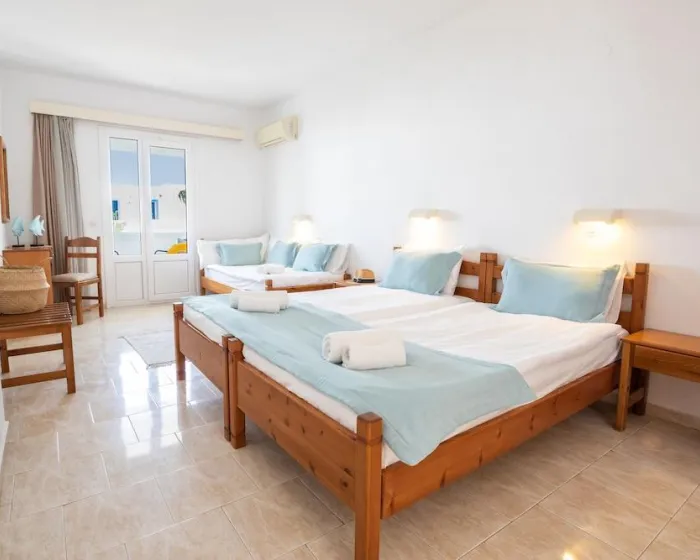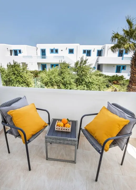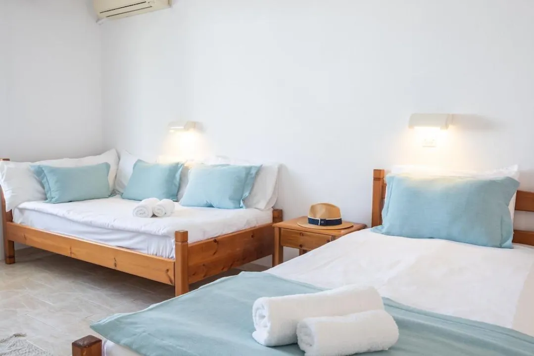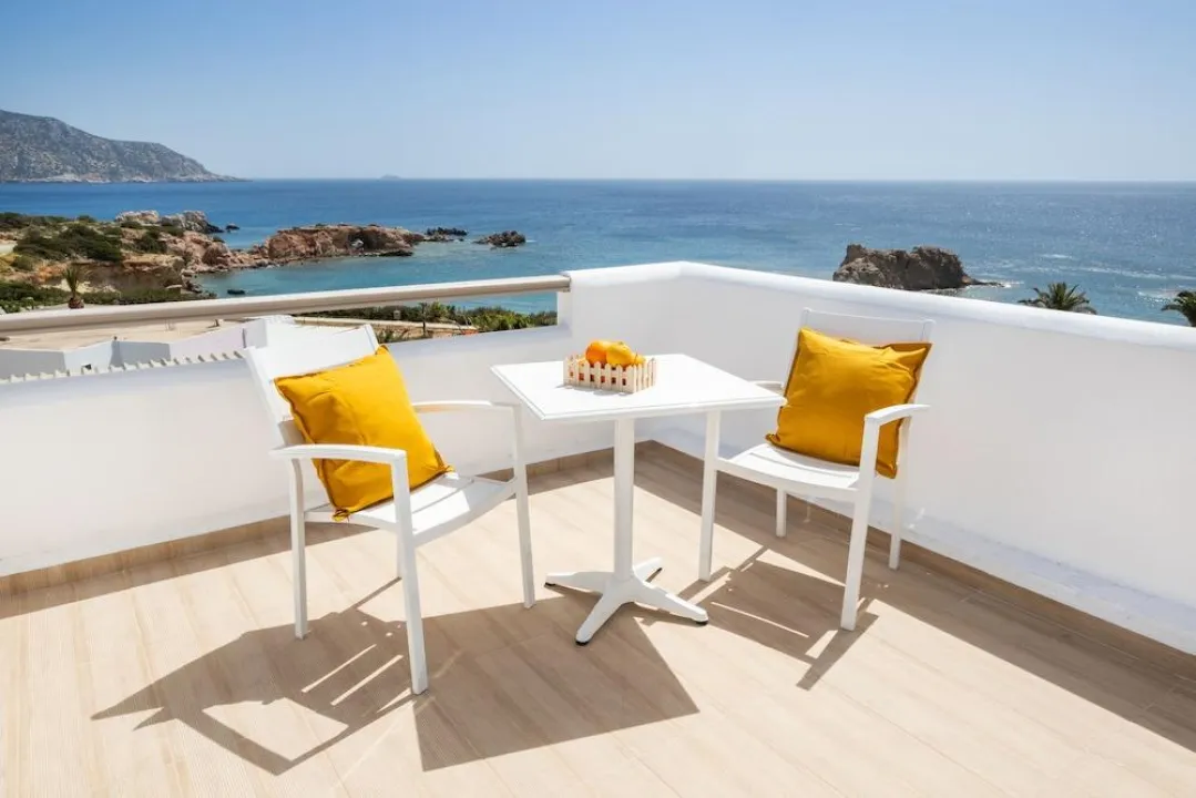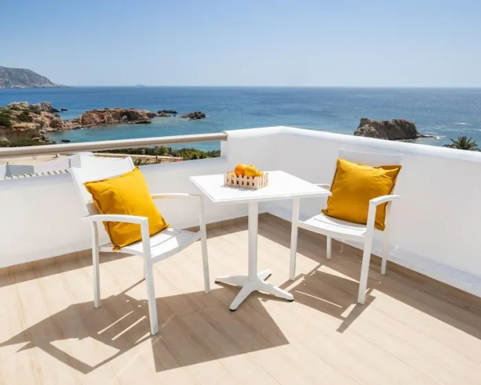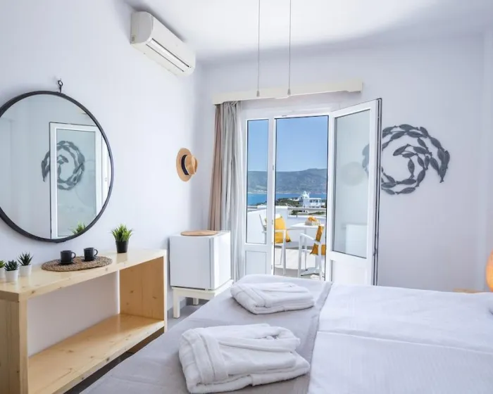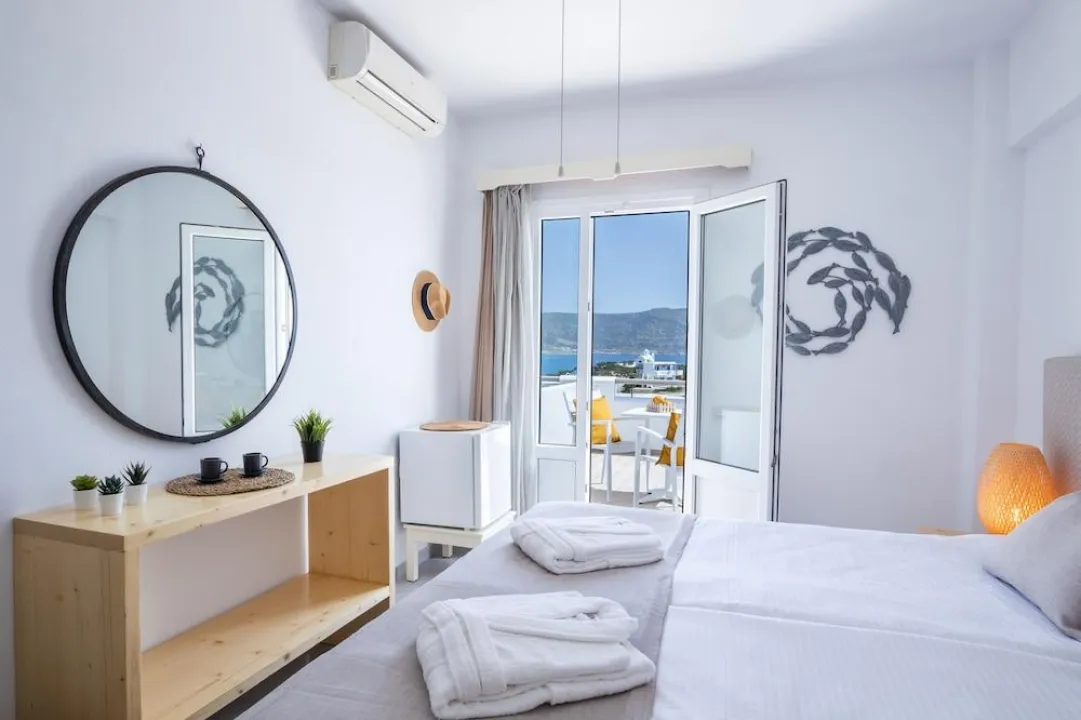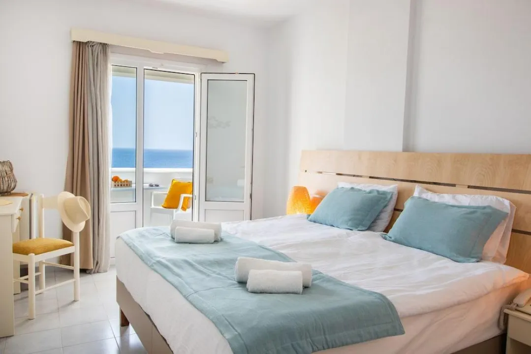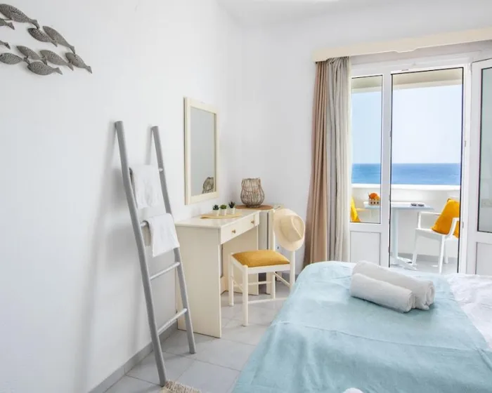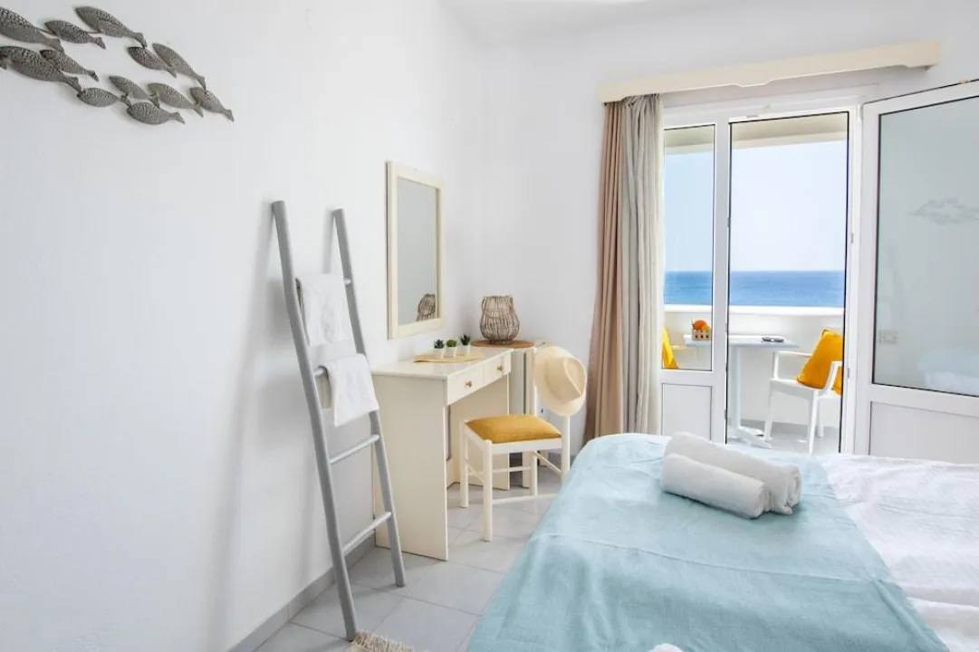 Klima uređaj, centralno grejanje i ventilator obezbeđuju da sobe održavaju prijatne temperature. Gosti mogu opušteno uživati u pogledu na more sa terase ili privatnog terase nekih soba. Sobe imaju bračni krevet ili krevet queen-size. Dostupne su odvojene spavaće sobe. Kreveti za decu mogu biti dostupni na zahtev. Takođe su dostupni sef, minibar i radni sto. Kuhinja dolazi sa frižiderom. Dostupno je peglanje pantalona za udobnost gostiju. Takođe su obezbeđeni telefon, TV i WiFi (bez dodatne naplate). Papuče su uključene. Kupatila su opremljena tuš-kadom i đakuzijem. Dostupni su fen za kosu, ogledalo za šminkanje i bade mantili. Hotel ima porodične sobe i sobe za nepušače.