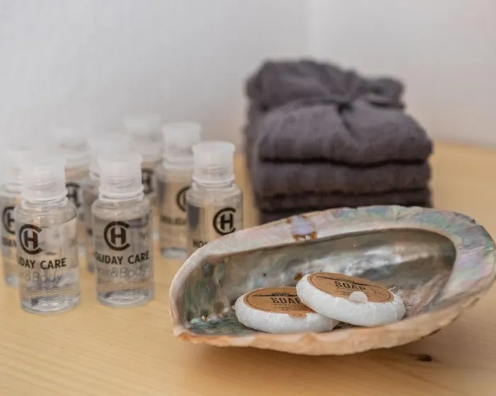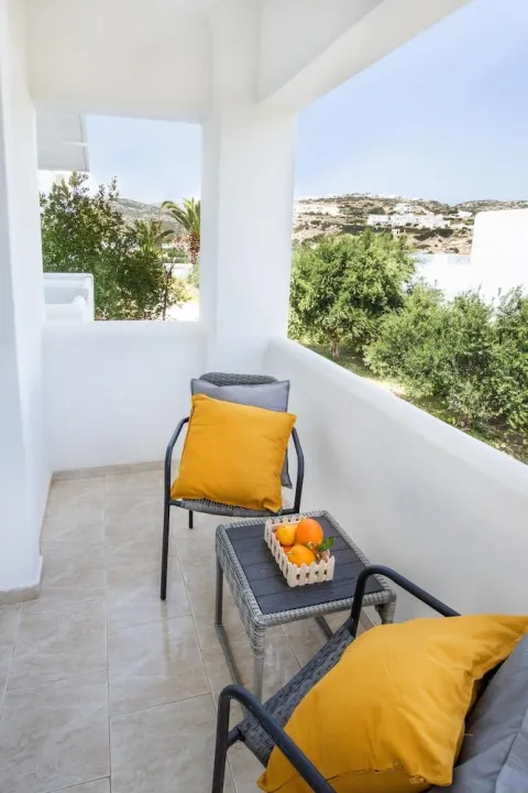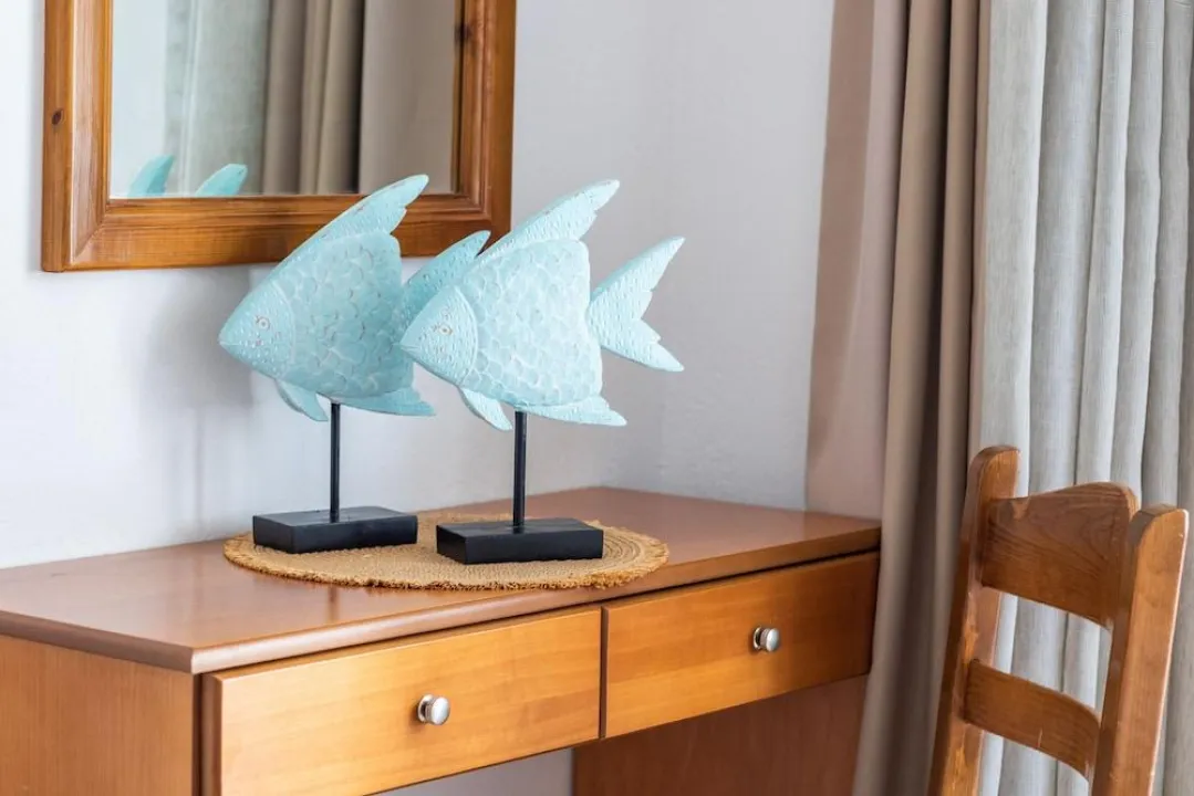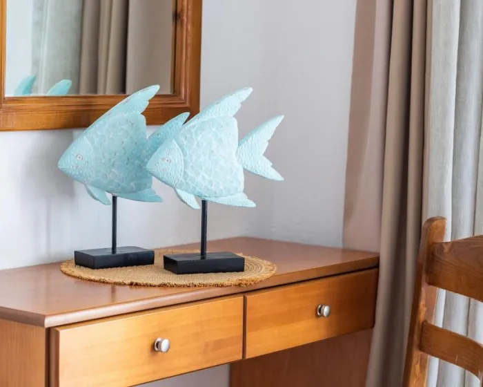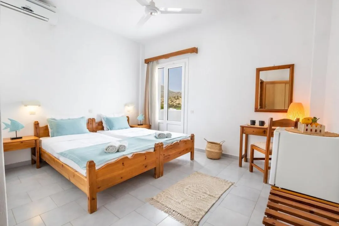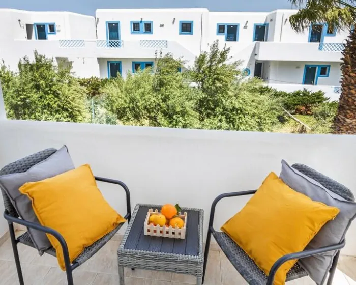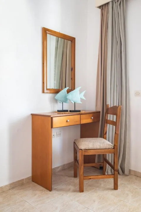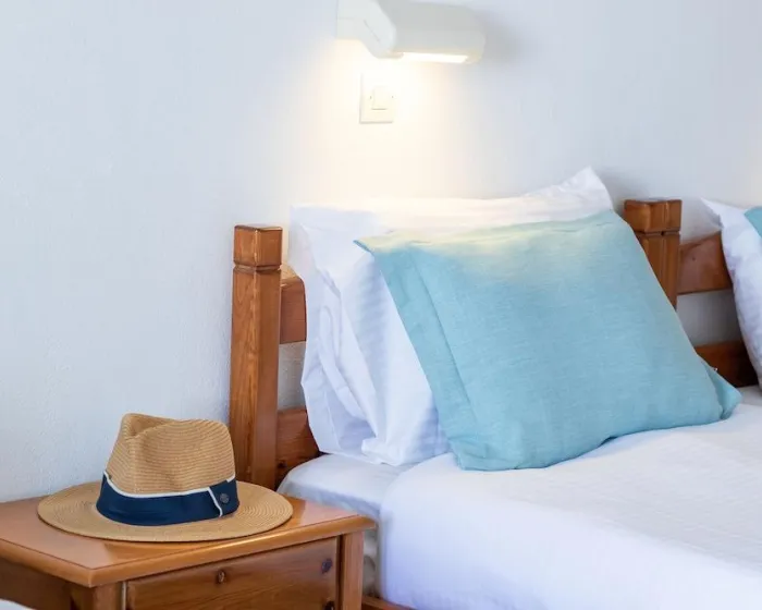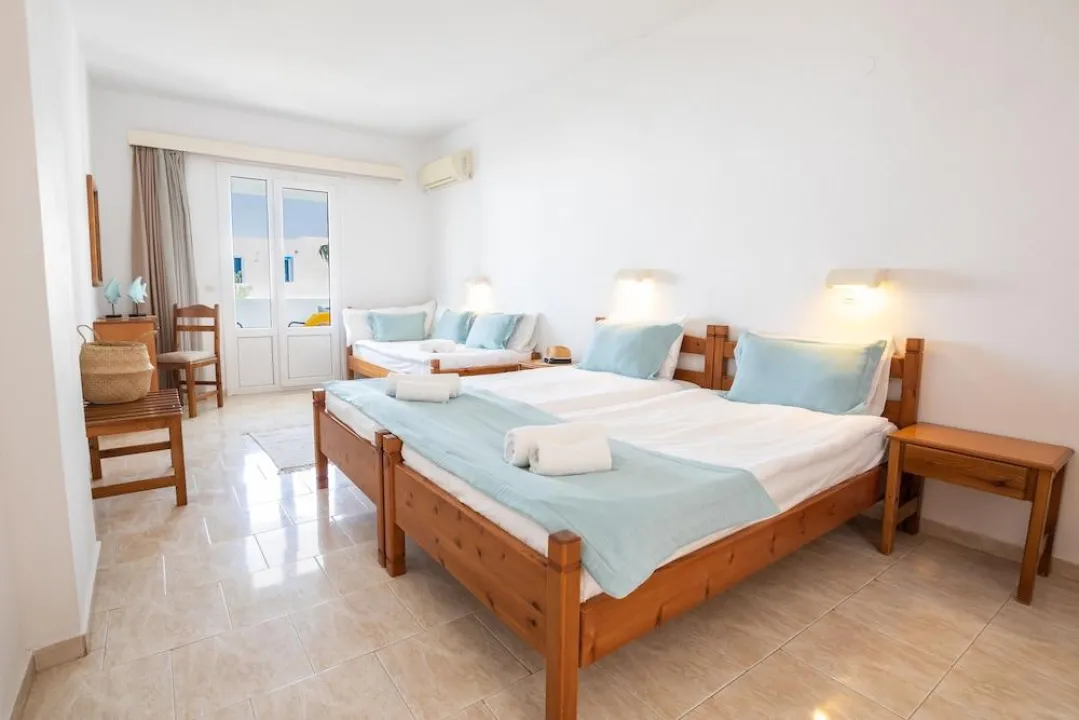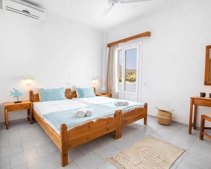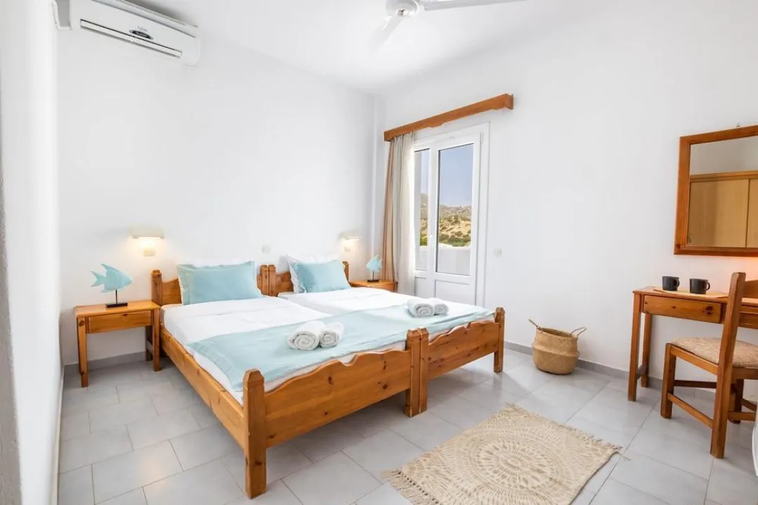 Klima uređaj, centralno grejanje i ventilator obezbeđuju da sobe održavaju prijatne temperature. Gosti mogu opušteno uživati u pogledu na more sa terase ili privatnog terase nekih soba. Sobe imaju bračni krevet ili krevet queen-size. Dostupne su odvojene spavaće sobe. Kreveti za decu mogu biti dostupni na zahtev. Takođe su dostupni sef, minibar i radni sto. Kuhinja dolazi sa frižiderom. Dostupno je peglanje pantalona za udobnost gostiju. Takođe su obezbeđeni telefon, TV i WiFi (bez dodatne naplate). Papuče su uključene. Kupatila su opremljena tuš-kadom i đakuzijem. Dostupni su fen za kosu, ogledalo za šminkanje i bade mantili. Hotel ima porodične sobe i sobe za nepušače.