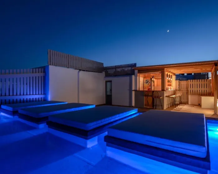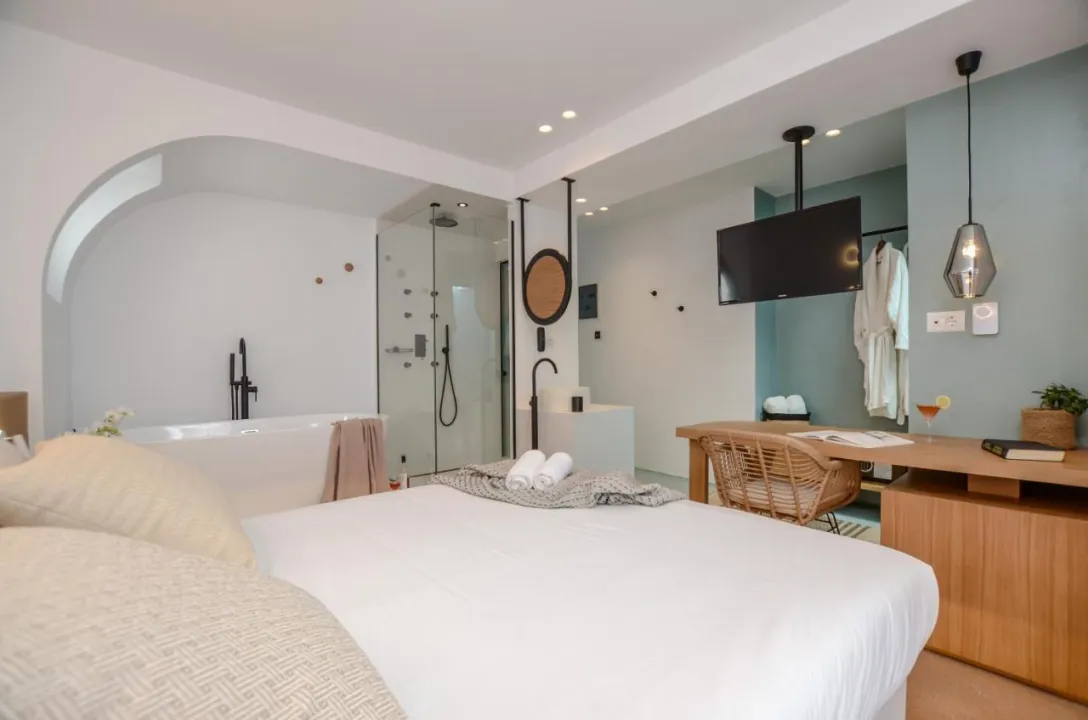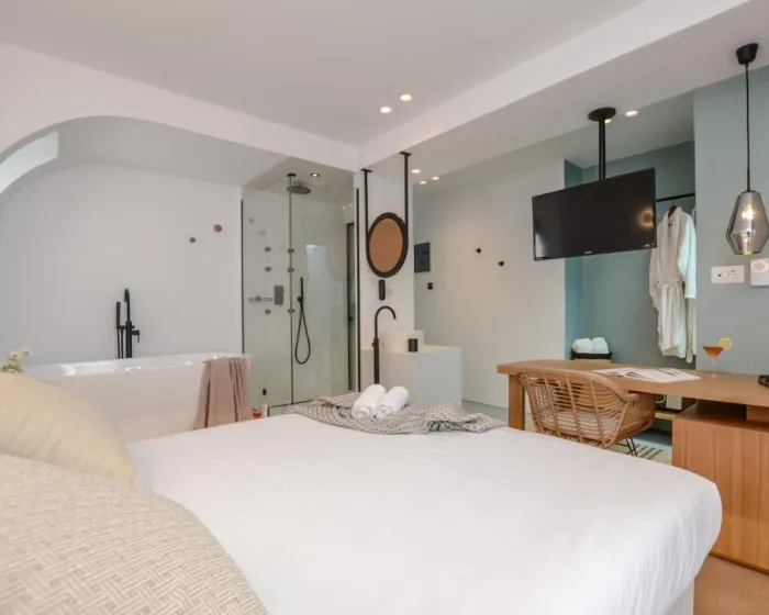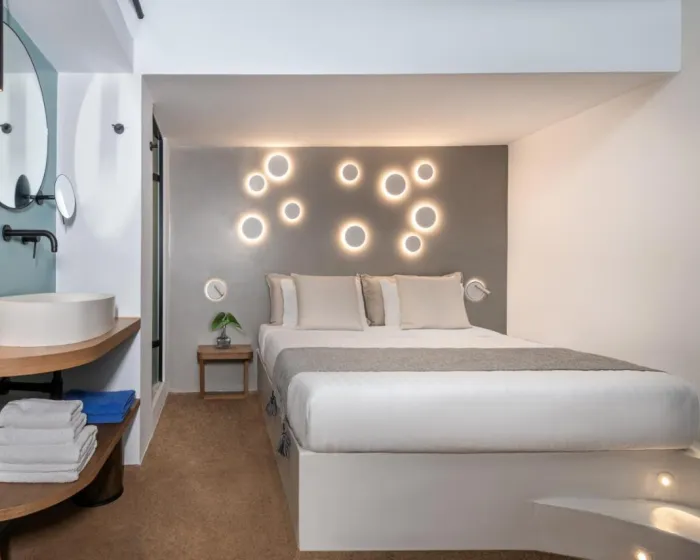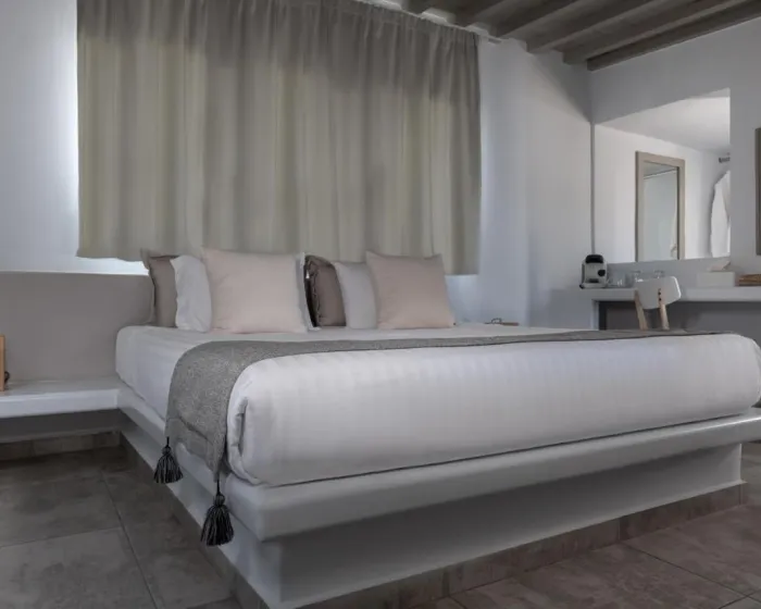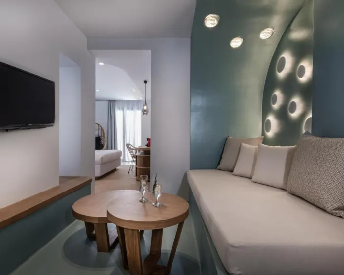 Sobe su opremljene klima uređajem i podesivim centralnim grejanjem. U većini jedinica, gosti mogu uživati u pogledu na more sa balkona ili terase. U sobama se nalazi bračni krevet i kauč na razvlačenje. Dodatni kreveti mogu biti zatraženi. Na raspolaganju je i sef i radni sto. Gosti će takođe pronaći frižider među standardnim sadržajima. Tu su i set za peglanje i pegla. Telefon, televizor sa satelitskim/ kablovskim kanalima i WiFi (bez dodatne naplate) obezbeđuju optimalnu udobnost. Kupatila su opremljena tuš kabinom i kadom, kao i fenom za kosu. Kao poseban dodatak, kupatila su takođe opremljena kozmetičkim proizvodima i izborom peškira. Hotel ima porodične sobe i sobe za nepušače.