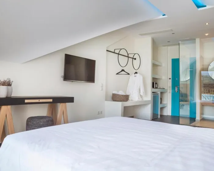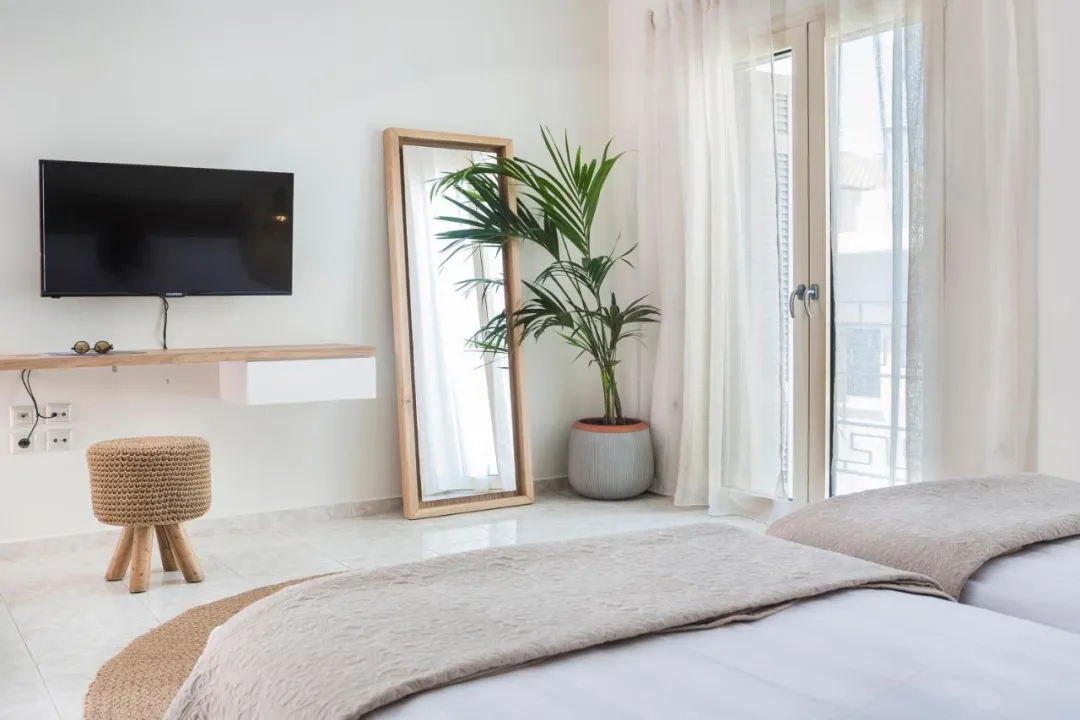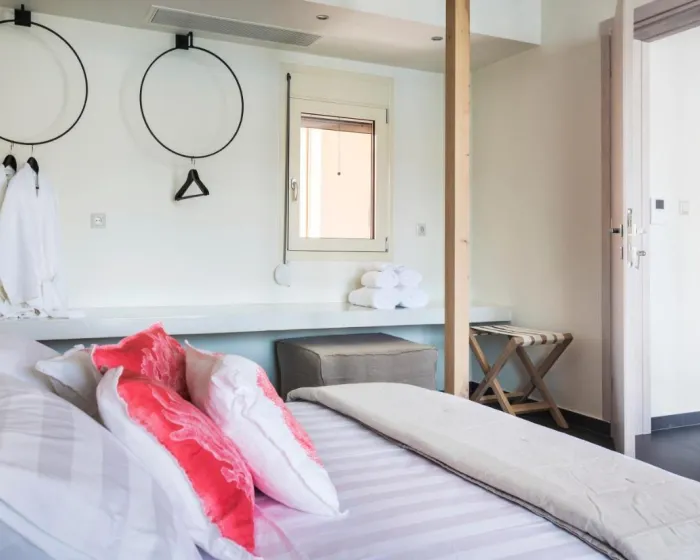Centralno grejanje osigurava da sobe održavaju udobne temperature. Većina jedinica ima pogled na more. Sobe imaju bračni krevet i kauč na razvlačenje. Dodatni kreveti mogu biti zatraženi. Oprema uključuje peglu za pantalone, TV, sef i WiFi. Fen za kosu i telefon se nalaze u kupatilima za svakodnevnu upotrebu. Hotel ima porodične sobe i sobe za nepušače.