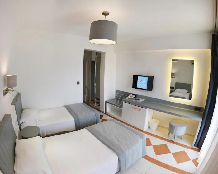 Klima uređaj i centralno grejanje osiguravaju da sobe održavaju udobne temperature. U većini jedinica, gosti mogu uživati u pogledu na more sa balkona ili terase. Sobe imaju bračni krevet, krevet queen-size ili sofu. Dodatni kreveti mogu biti zatraženi. Sef i mini bar su takođe dostupni. Gosti će takođe naći mini frižider među standardnim sadržajima. Telefon, TV i WiFi (bez dodatne naplate) pružaju sve neophodno za udoban odmor. Papuče su uključene. Kupatila su opremljena tušem, kadom i fenom za kosu. Hotel ima porodične sobe i sobe za nepušače.