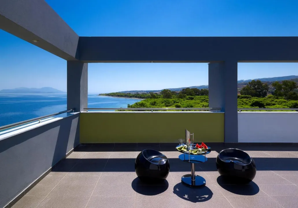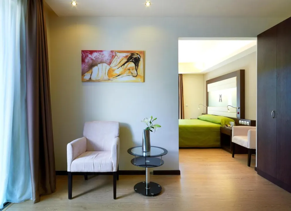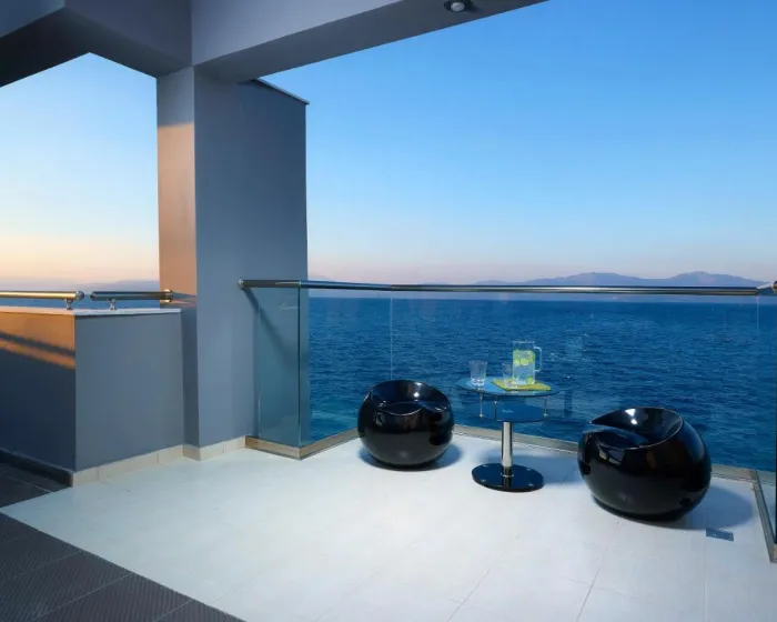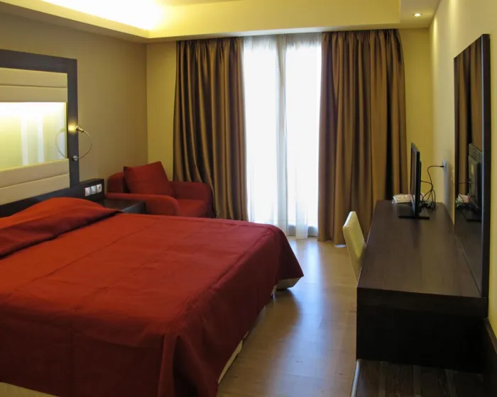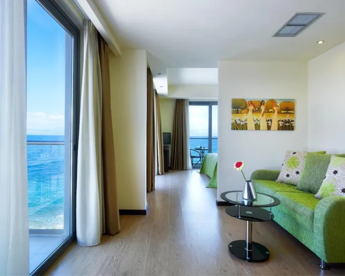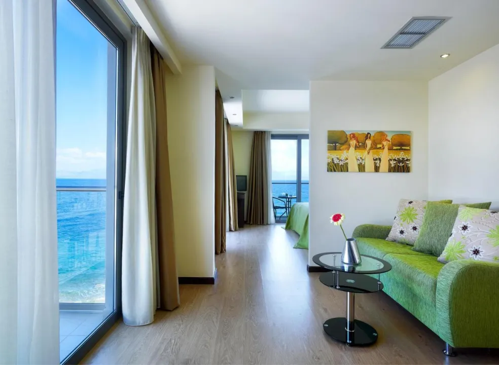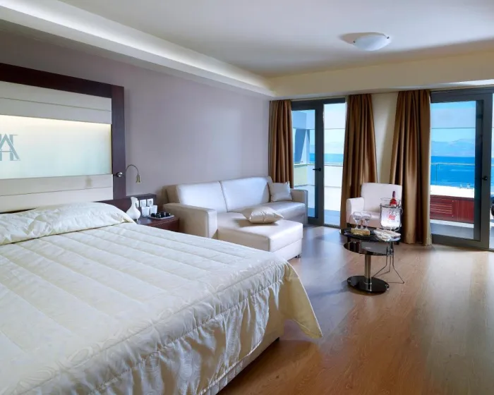 Klima uređaj i centralno grejanje osiguravaju udobne temperature u sobama. Gosti mogu uživati u pogledu na more sa balkona ili terase. Sobe imaju bračni krevet, krevet queen size ili kauč na razvlačenje. Dodatni kreveti mogu biti zatraženi. Sef i minibar su takođe dostupni. Telefon, TV i WiFi (bez dodatne naknade) pružaju sve što je potrebno za udoban odmor. Papuče su uključene. Kupatila su opremljena tušem, kadom i đakuzijem. Fen za kosu je takođe obezbeđen. Sobe prilagođene osobama u kolicima sa pristupačnim kupatilima takođe su dostupne. Hotel ima porodične sobe i sobe za nepušače.