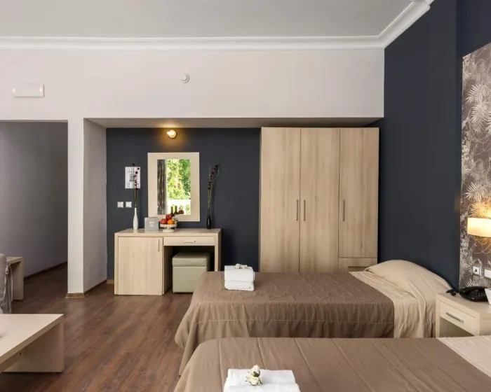 Klima uređaj i centralno grejanje osiguravaju udobnu temperaturu u sobama. Balkon je standardni dodatak nekih soba. Sobe imaju bračni krevet i sofu. Dodatni kreveti mogu biti zatraženi. Na raspolaganju su i sef i minibar. Dodatni sadržaji uključuju frižider i mini frižider. Set za peglanje je obezbeđen radi praktičnosti gostiju. Direktni telefonski poziv, televizor sa satelitskim/kablovskim kanalima, radio, stereo sistem, konzola za video igre i WiFi su takođe dostupni. Kupatila su opremljena tuš kabinom i kadom, kao i fenom za kosu. Za dodatnu udobnost u kupatilima, gostima se nude kozmetički proizvodi. Hotel ima porodične sobe i sobe za nepušače.