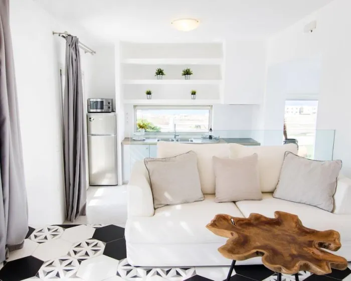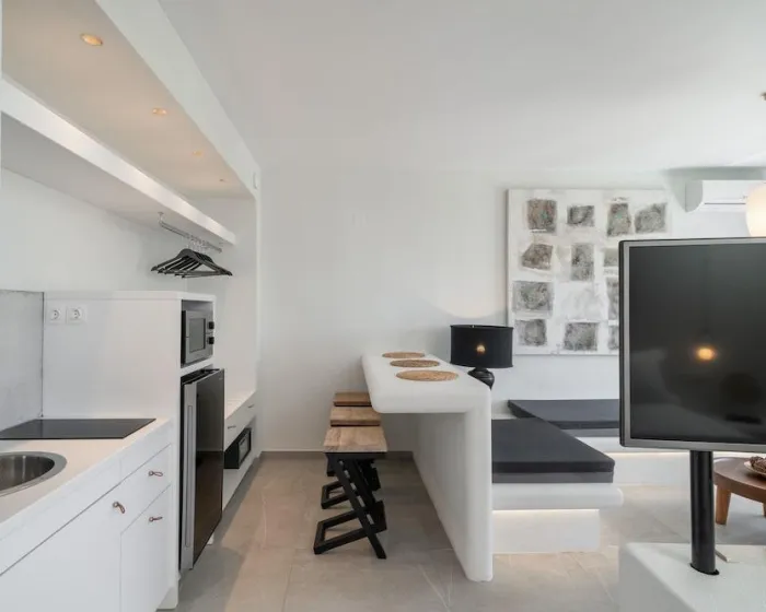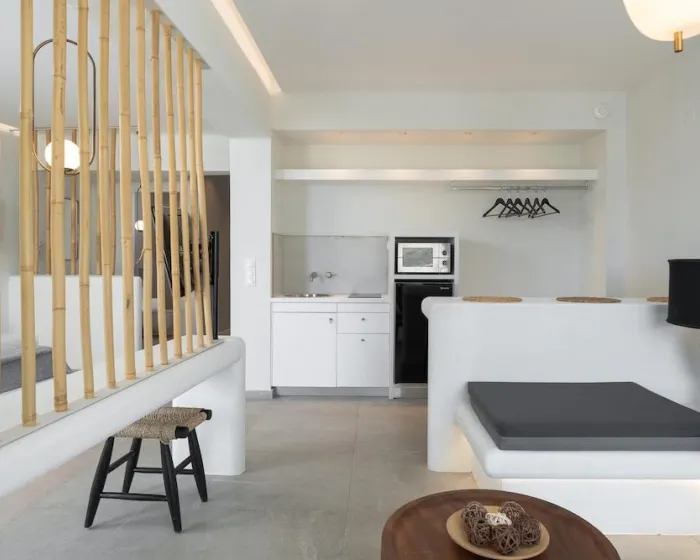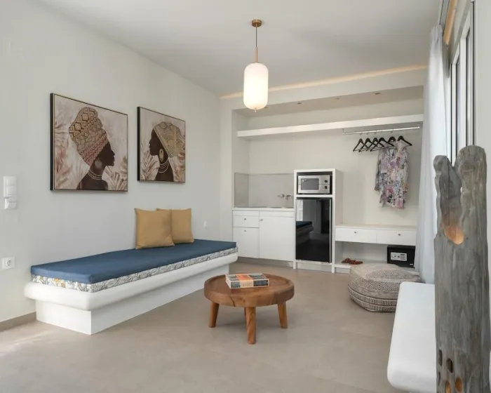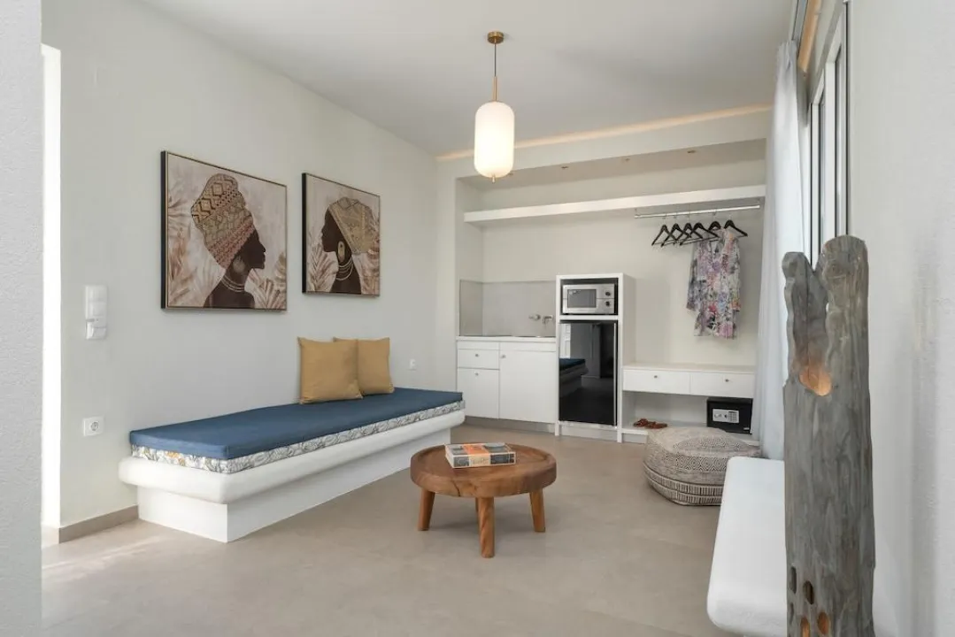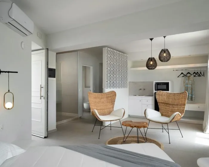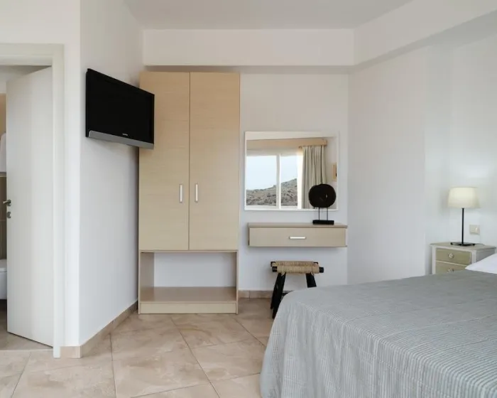 Klima uređaj i centralno grejanje obezbeđuju udobne temperature u sobama. Gosti mogu uživati u pogledu na more sa balkona ili terase. Sobe imaju bračni krevet i sofu na razvlačenje. Dostupne su i odvojene spavaće sobe. Dodatni kreveti mogu se zatražiti. Na raspolaganju su sef i mini bar. Kuhinja dolazi sa frižiderom, mikrotalasnom pećnicom i aparatom za kafu/čaj. Pegla je obezbeđena radi gostiju. Takođe su obezbeđeni telefon, TV, radio i WiFi. Kupatila su opremljena tušem i đakuzijem, kao i fenom za kosu. Hotel ima porodične sobe, sobe za nepušače i sobe za pušenje.
