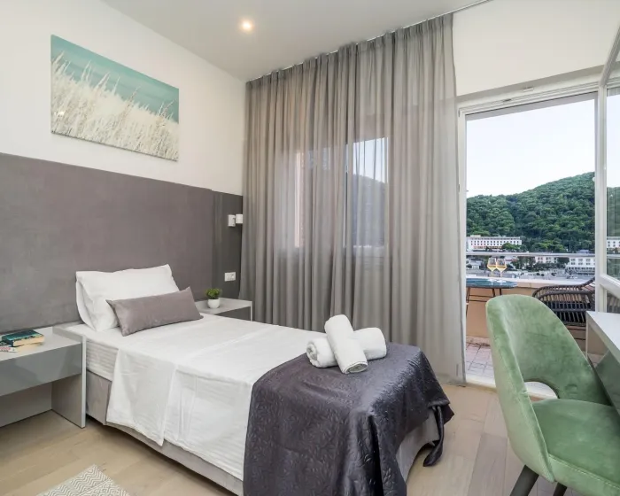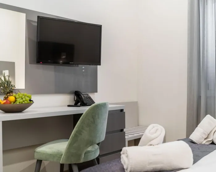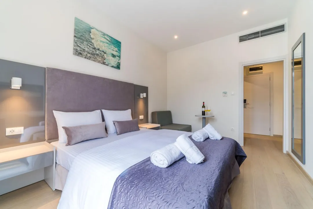 Centralno grejanje obezbeđuje da sobe održe pravu temperaturu. Većina jedinica ima pogled na more. Sobe imaju bračni krevet, krevet queen size, krevet king size ili sofu. Dodatni kreveti mogu biti zatraženi. Sadržaji uključuju telefon i WiFi (bez dodatne naknade). Hotel ima sobe za nepušače.