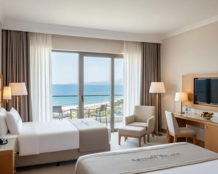 Nalazi se u Antaliji u Mediteranskoj regiji Turske i plaža Lara Halk udaljena je 600 metara, Artemis Luxury Palace Hotel pruža smeštaj sa besplatnim bežičnim internetom, dečijim igralištem, privatnom plažom i besplatnim privatnim parkingom. Svaki smeštaj u ovom aпартхотелу sa 5 zvezdica ima pogled na more, a gostima je na raspolaganju i hamam i soba za vežbanje. Apart hotel ima spoljašnji bazen sa barom pored bazena, kao i saunu i recepciju koja radi 24 sata.