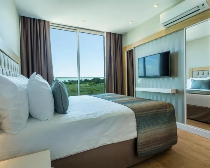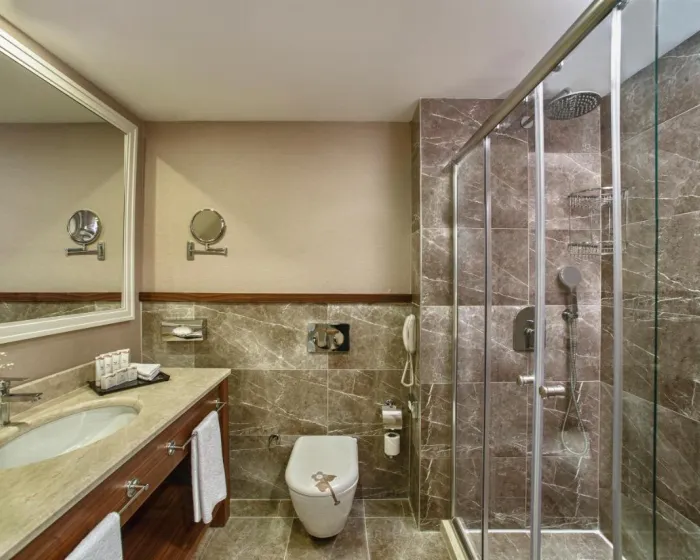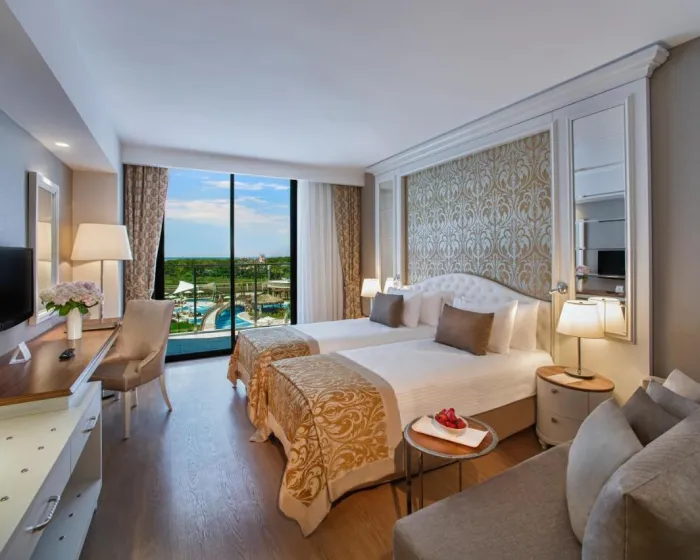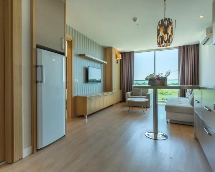 Klima uređaj i centralno grejanje obezbeđuju da sobe održavaju udobne temperature. U većini jedinica, gosti mogu uživati u delimičnom pogledu na more sa balkona ili terase. Sobe imaju bračni krevet i sofu na razvlačenje. Dostupne su i odvojene spavaće sobe. Za mlađe goste se mogu zatražiti dečiji kreveti i dodatni ležajevi. Na raspolaganju su i sef, minibar i radni sto. Dodatni sadržaji uključuju mini frižider i aparate za kafu/čaj. Pegla za pantalone je obezbeđena radi gostovog komfora. Takođe su obezbeđeni telefon, TV i Wi-Fi (bez dodatne naknade). Usluga uspavljivanja goste dodatno udobno tokom večernjih sati. Izbor jastuka obezbeđuje udoban boravak. Kupatila su opremljena tušem i dečijom kadom. Fen za kosu, šminkersko ogledalo i bade mantili su dostupni za svakodnevnu upotrebu. Gosti takođe mogu rezervisati 6 soba prilagođenih za osobe u kolicima sa prilagođenim kupatilima. Kompleks ima 129 porodičnih soba, soba za nepušače i soba za pušače.