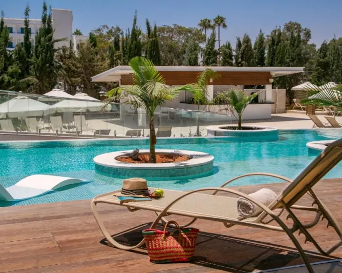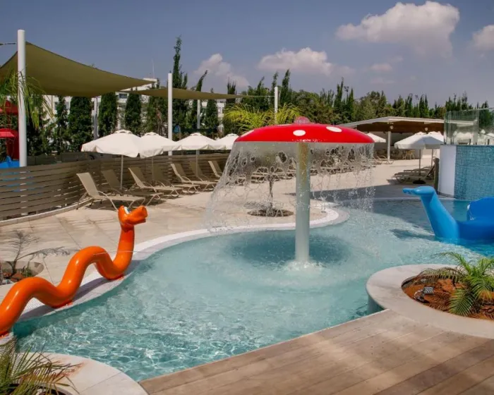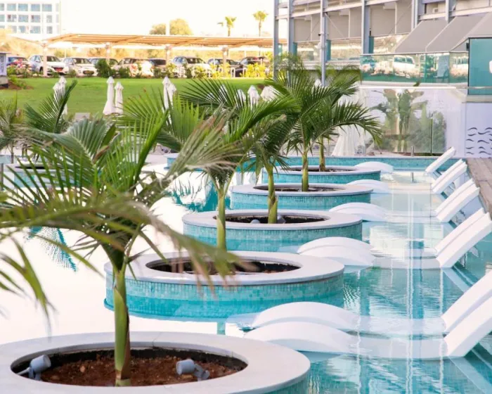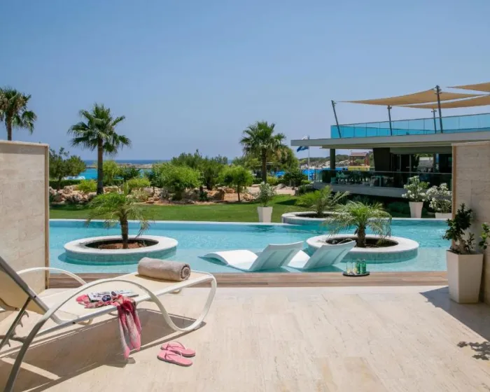 Swim-up soba (23 m2, direktan pristup bazenu sa ležaljkama i suncobranom, max 3 odrasle ososbe ili dvoje odraslih i jedno dete, uključujući i bebu).