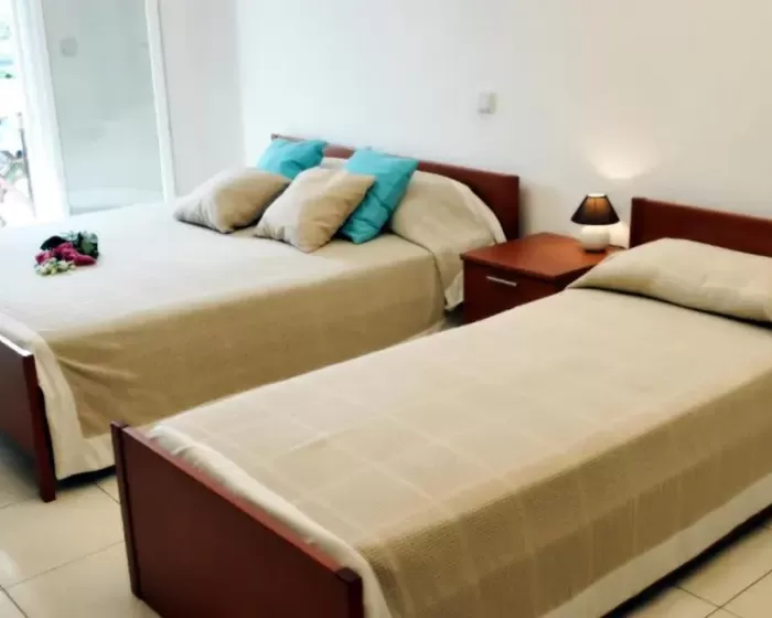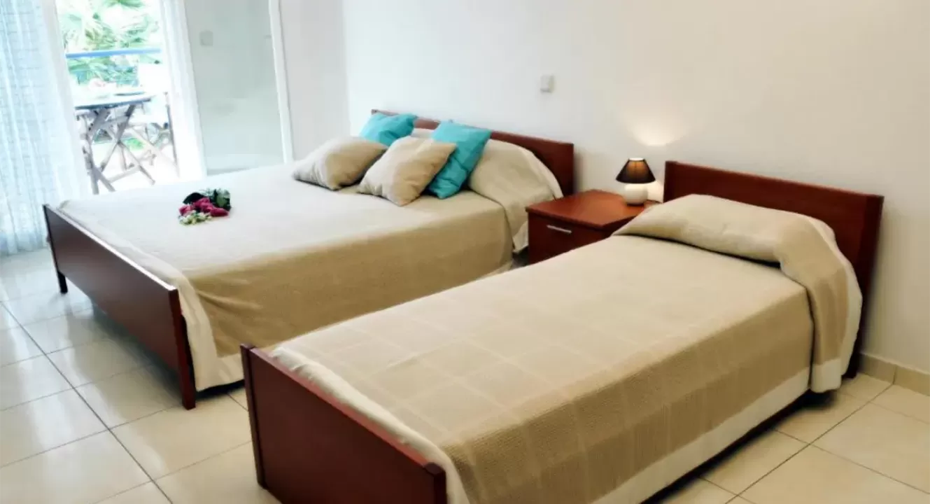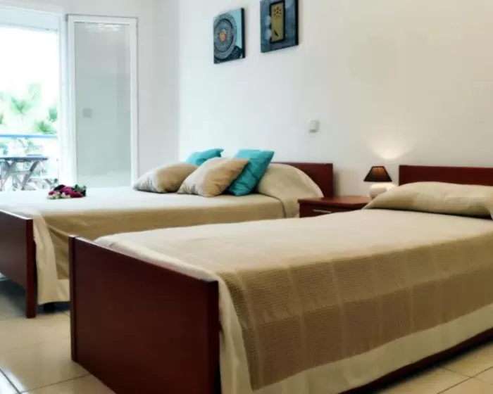 Sobe su klimatizovane i sadrže balkon ili terasu, većinom sa pogledom na more ili vrt. Sve jedinice imaju frižider, čajnu kuhinju sa osnovnim posuđem i pločom za kuvanje. U sobama se nalazi i TV, kao i sopstveno kupatilo sa tušem, fenom za kosu i osnovnim toaletnim priborom.
