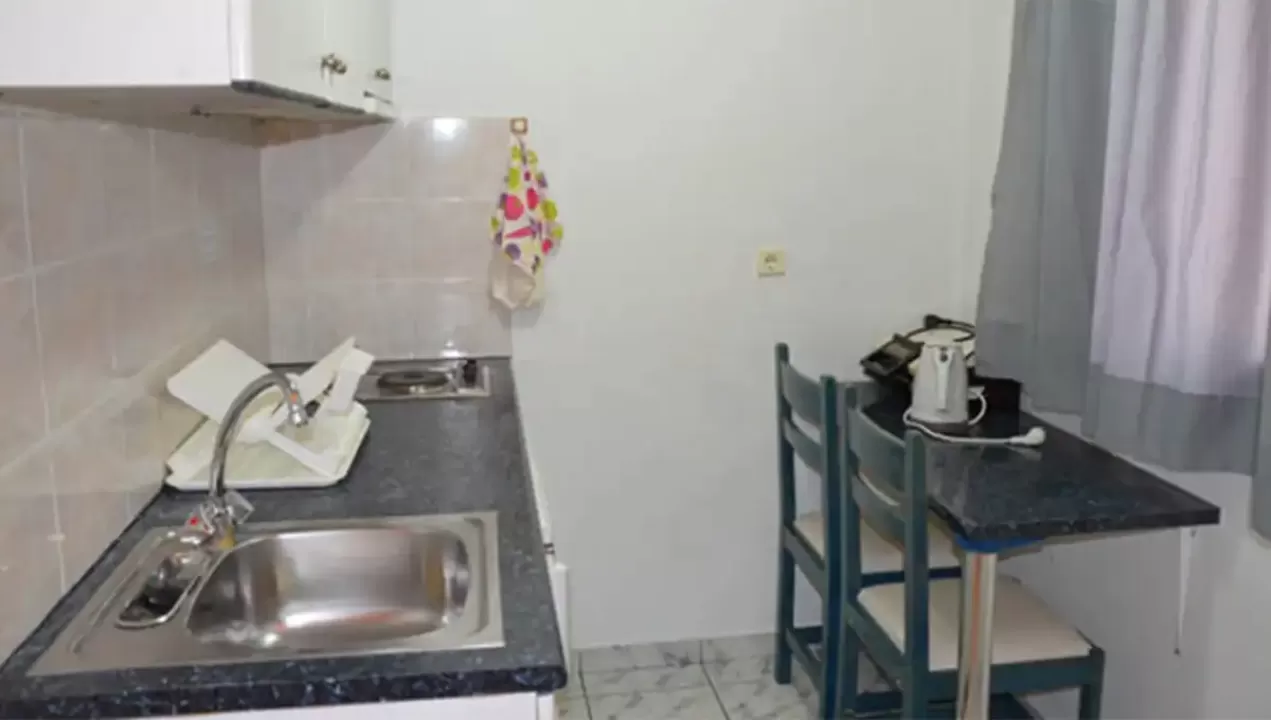 1/2 i 1/3 studji - Studiji su opremljeni sa dva/tri kreveta dimenzija 90x190cm, TV/KAT, wifi, klima uredjajem(uz doplatu) sefom u sobi i ormanom. Svaki studio poseduje svoje kupatilo. Kuhinja je potpuno opremljena posudjem i svaki studio ima toster i ketler.